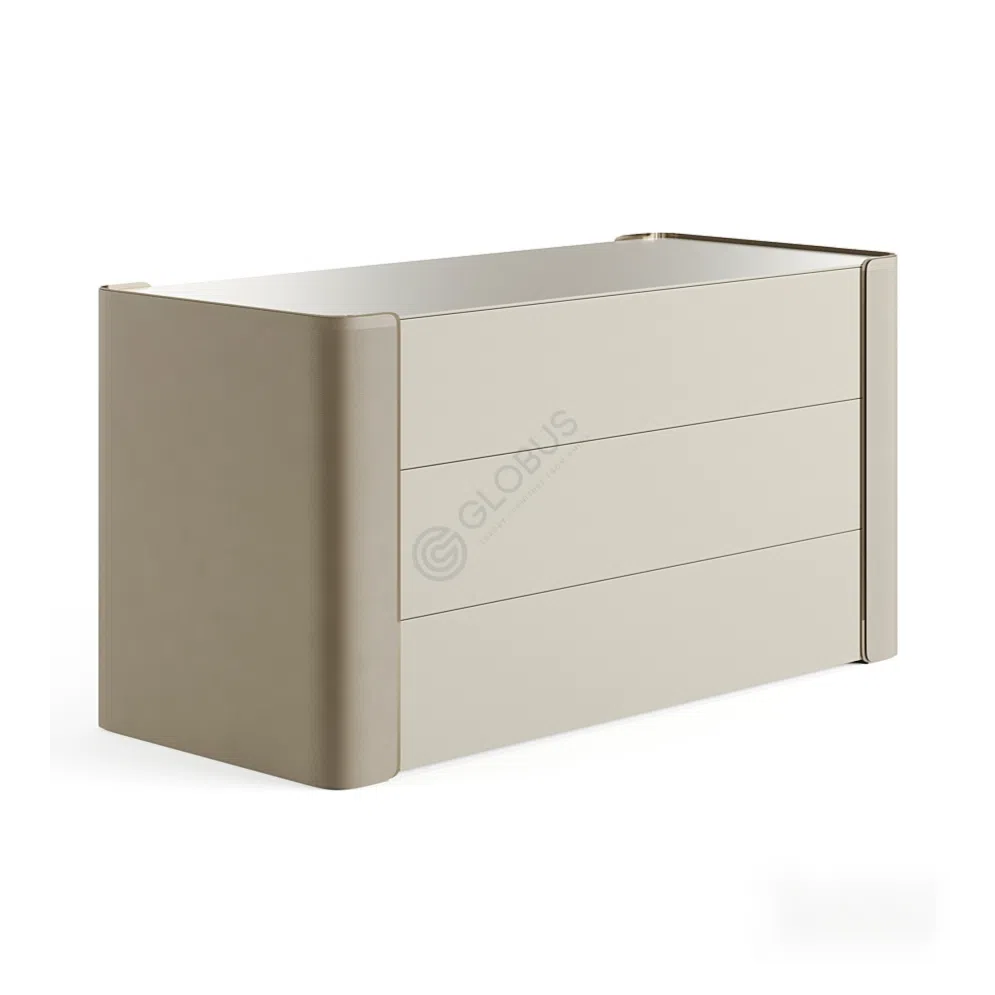 Эта прикроватная тумба воплощает современный подход к оформлению спальни, соединяя лаконичные формы и функциональность. Чистые линии и гладкая поверхность подчёркиваются элегантностью округлых граней, а нейтральные оттенки добавляют спокойствия интерьеру.