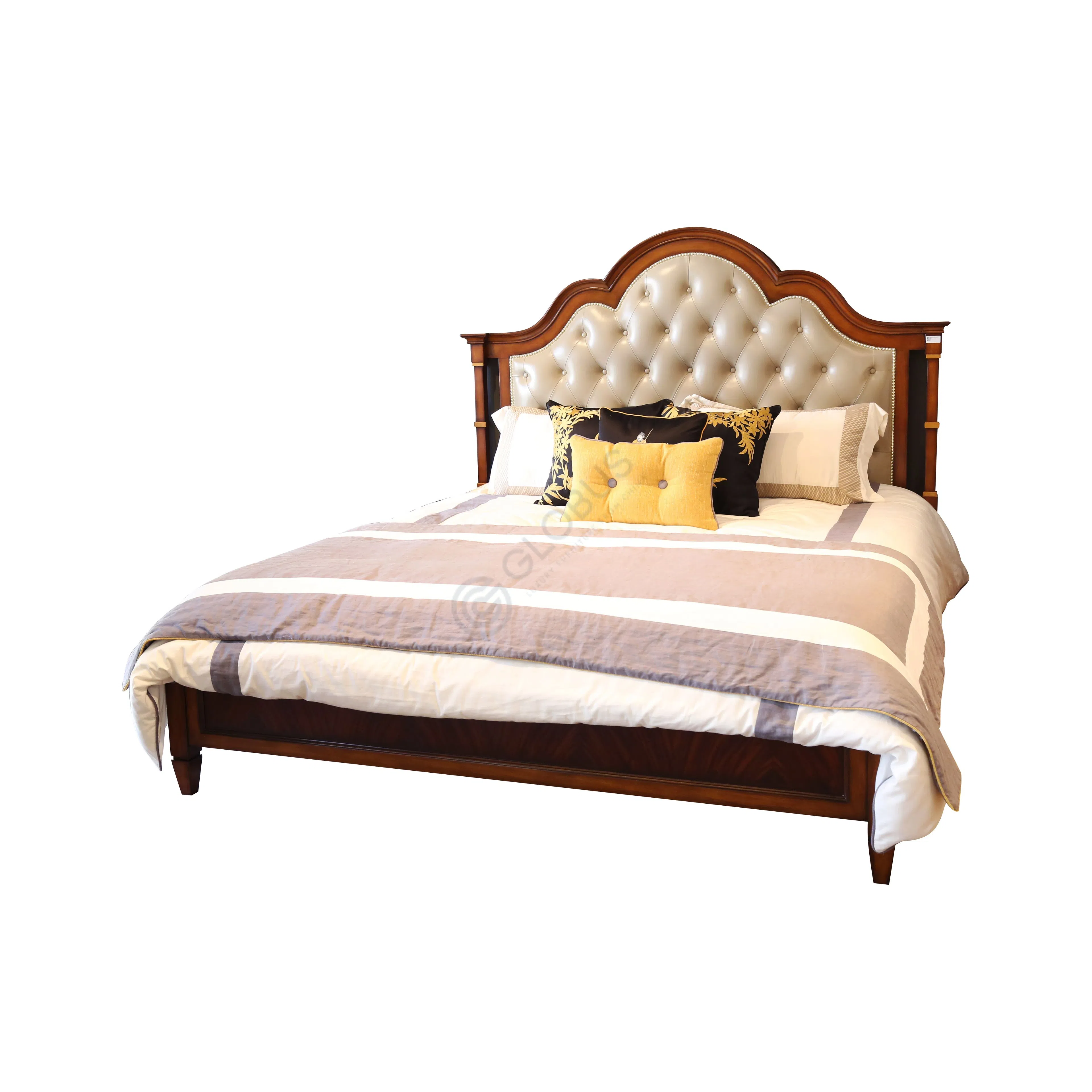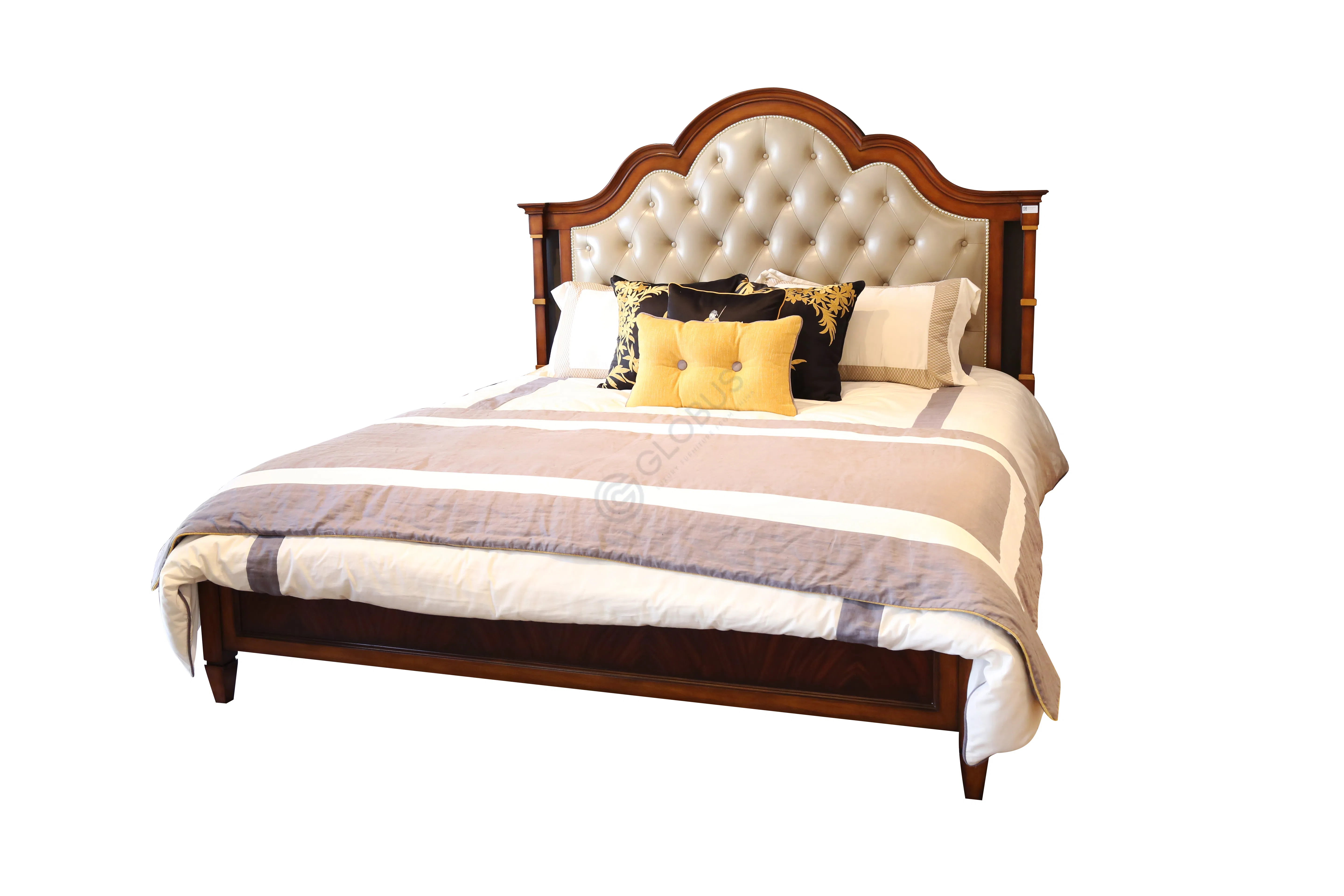 Эта роскошная кровать создана для тех, кто ценит изысканный комфорт и элегантность в интерьере своей спальни. Основание изготовлено из натурального дерева, гарантирующего прочность и долговечность, в то время как изголовье обтянуто высококачественной кожей, придающей дизайну изысканность и неповторимый стиль. Каркас из МДФ обеспечивает надежность конструкции, а детали из шпона подчеркивают глубину цвета и текстуру древесины. Заботливо подобранные материалы и утонченные декоративные элементы гармонично сочетаются, обеспечивая не только эстетическое наслаждение, но и комфортный полноценный сон.