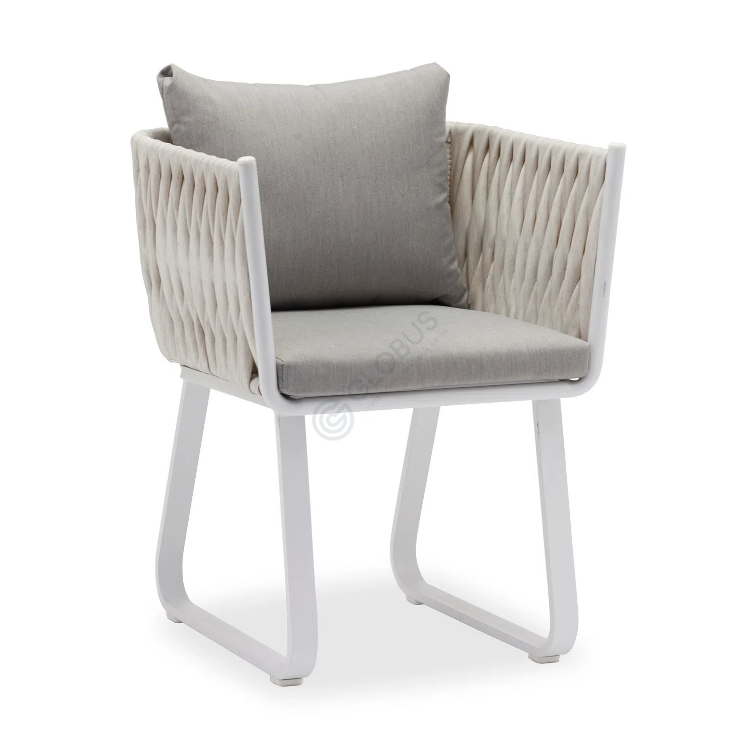 Основа выполнена из легкого, но прочного алюминия, образующего изящный каркас. Боковые части и спинка искусно оплетены искусственным ротангом, добавляя текстурный интерес и создавая уютное гнездообразное сиденье.