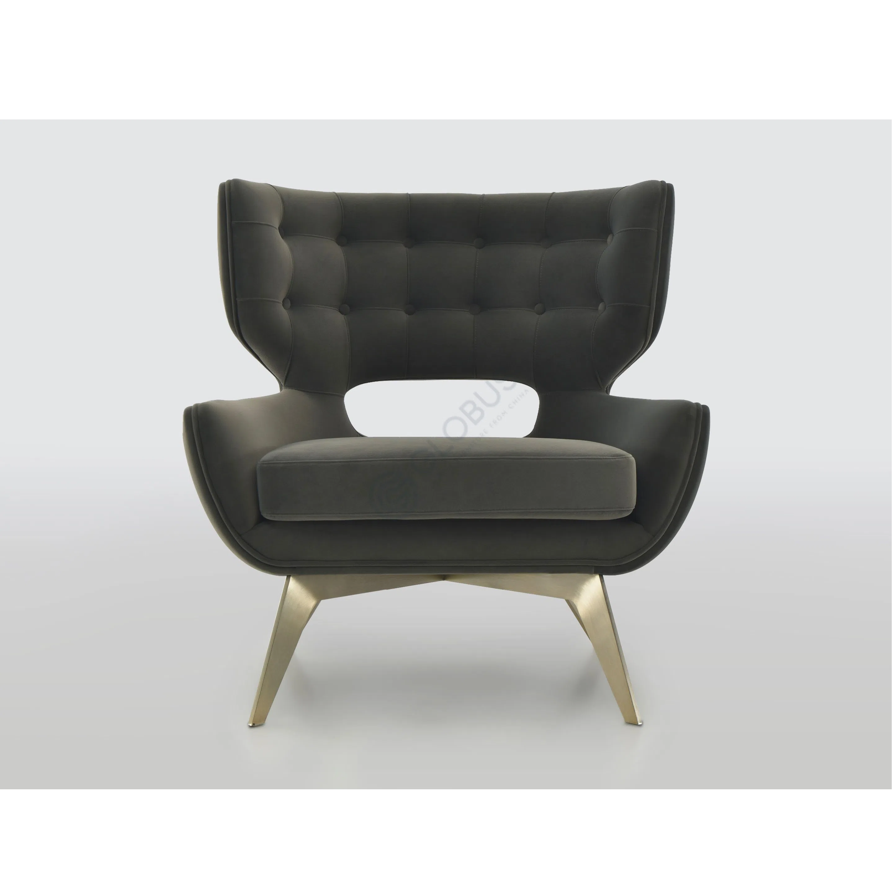 Опора стула демонстрирует смелое сочетание материалов и форм. Массивные, устойчивые передние ножки, изготовленные из фанеры с темным покрытием, контрастируют с тонкими и изящными задними опорами из нержавеющей стали. Эта комбинация не только обеспечивает превосходную прочность и устойчивость, но и придает конструкции динамизм, подчеркивая современное видение дизайна. Каждая деталь стула отражает безупречное качество и стремление к совершенству, создавая предмет, который будет служить долгие годы.