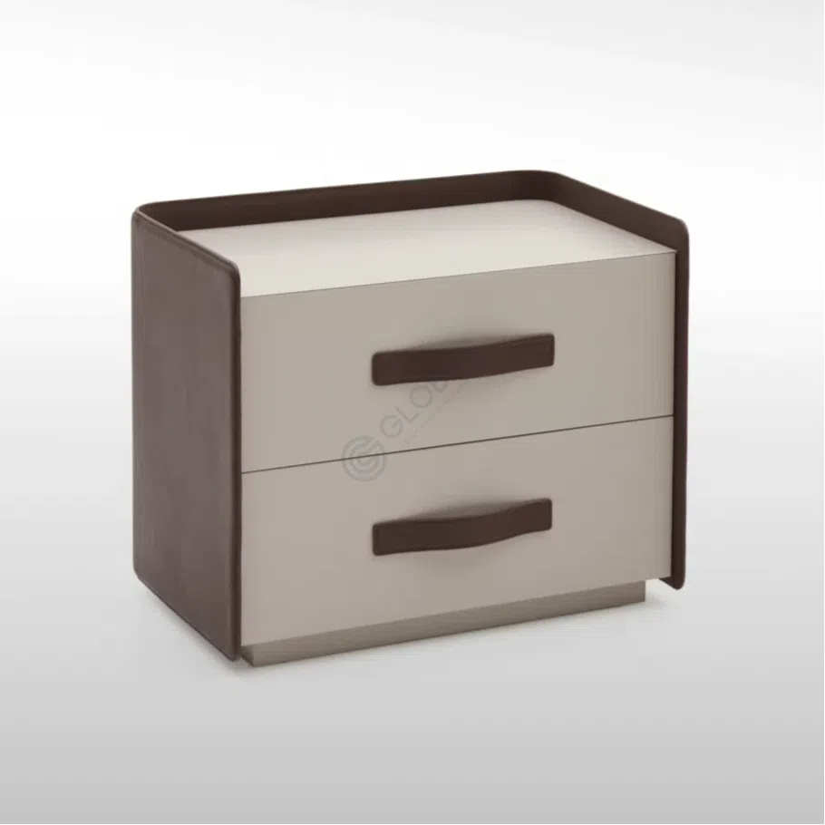Дизайн фасадов подчеркивает минимализм и функциональность. Шесть вместительных ящиков предлагают удобное хранение для самых разных вещей. Оригинальные ручки, выполненные из экокожи с металлическими креплениями, не только облегчают использование, но и служат стильным декоративным штрихом, завершая образ.
