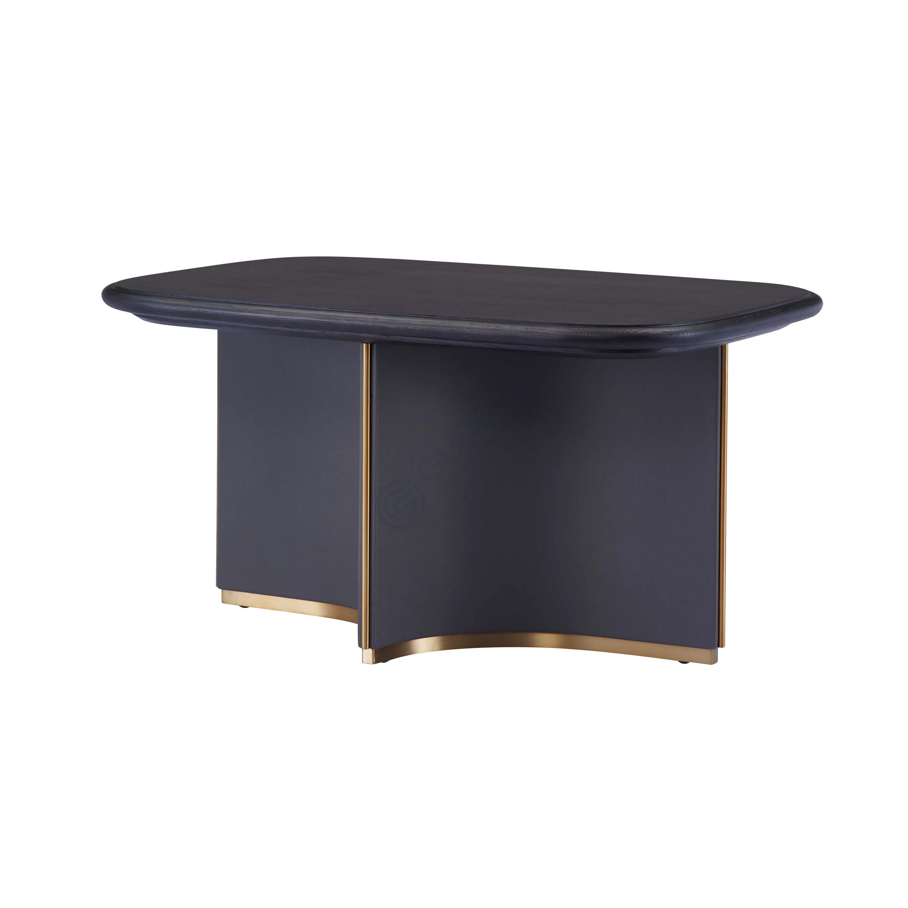Особое внимание привлекает основание предмета. Изготовленное из МДФ и отделанное шпоном с глянцевым покрытием, оно обладает глубоким оттенком и подчеркивает естественную красоту материала. Завершающий акцент вносит изогнутый нижний элемент из полированной нержавеющей стали цвета золота, добавляя композиции изысканности.