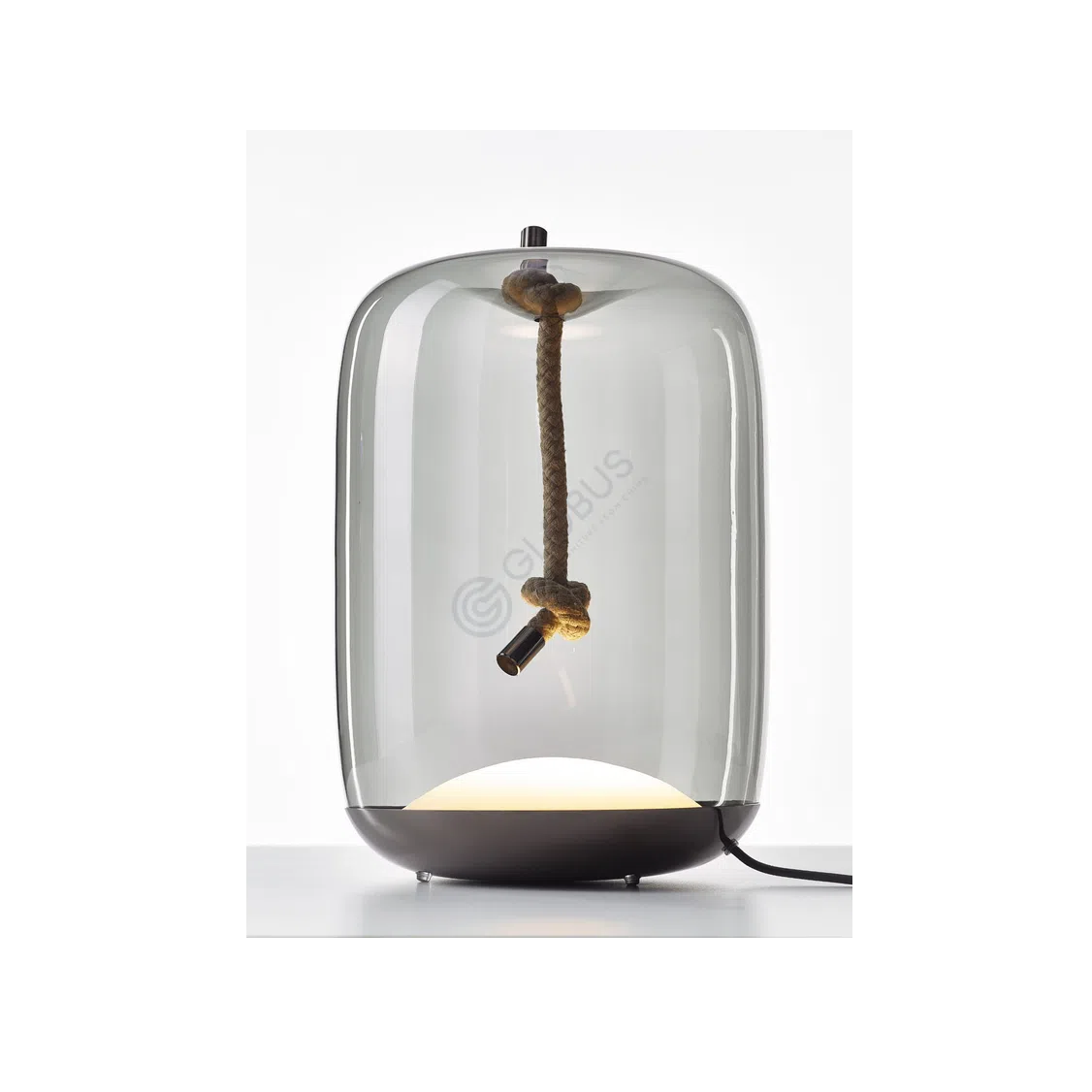 Прозрачная стеклянная часть плафона дополнена элегантным креплением из железа, обладающим теплым, медным оттенком. Этот продуманный элемент создает утонченный контраст и позволяет светильнику изящно висеть на фактурном шнуре, подчеркивая его современную эстетику.