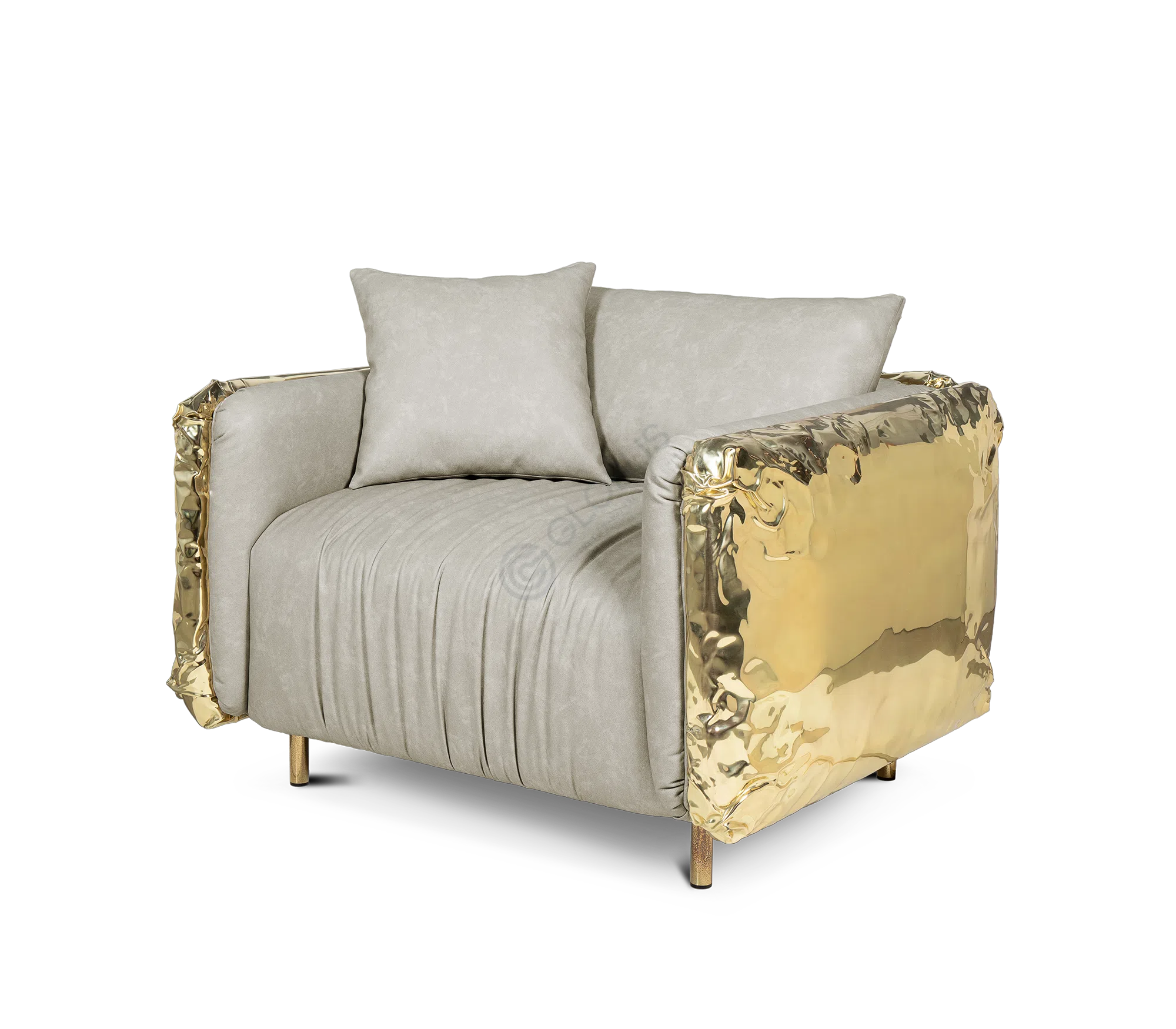 Этот диван воплощает в себе эстетику современного ар-деко, где лаконичность форм встречается с изысканной отделкой. Благородный текстиль с мягкой фактурой гармонично сочетается с выразительными металлическими акцентами, создавая цельный и запоминающийся образ.