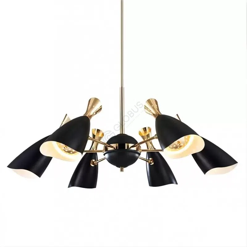Каждый источник света расположен на подвижном кронштейне, позволяя точно направлять поток, создавая идеальное освещение для чтения или подчеркивая определенные детали интерьера. Внутреннее покрытие плафонов усиливает яркость и придает свечению теплый золотистый оттенок, наполняя пространство мягким, обволакивающим светом.