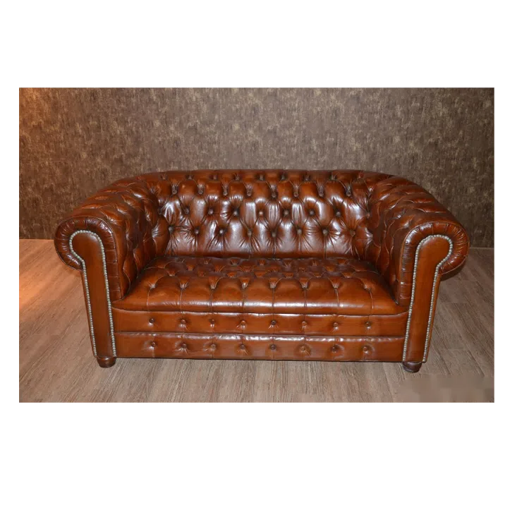 Элегантные детали, такие как декоративные металлические гвоздики, подчеркивают изгибы подлокотников и завершают образ, свидетельствуя о внимании к исполнению. Это изделие несет в себе уют и тепло, свойственные предметам с историей, при этом идеально соответствуя требованиям современного дизайна.