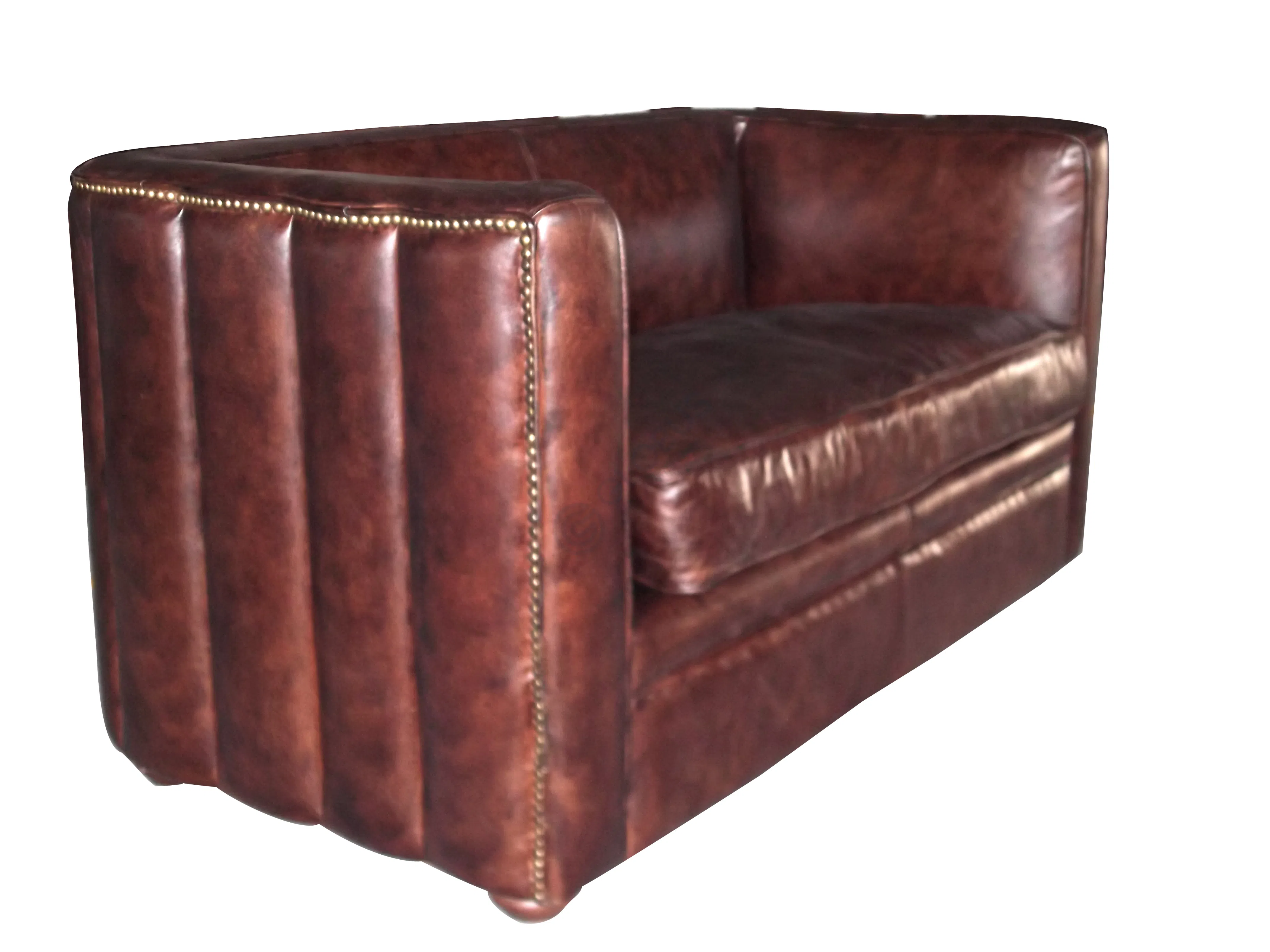 Обивка выполнена из высококачественной экокожи с фактурной поверхностью, имитирующей благородное старение натурального материала. Глубокий оттенок темного шоколада придает изделию винтажный шарм, а вертикальная прострочка по бокам подчеркивает строгие линии силуэта, добавляя визуальную ритмичность. Внутренняя конструкция опирается на прочный каркас, сочетающий натуральное дерево и фанеру, что гарантирует долговечность и сохранение формы.