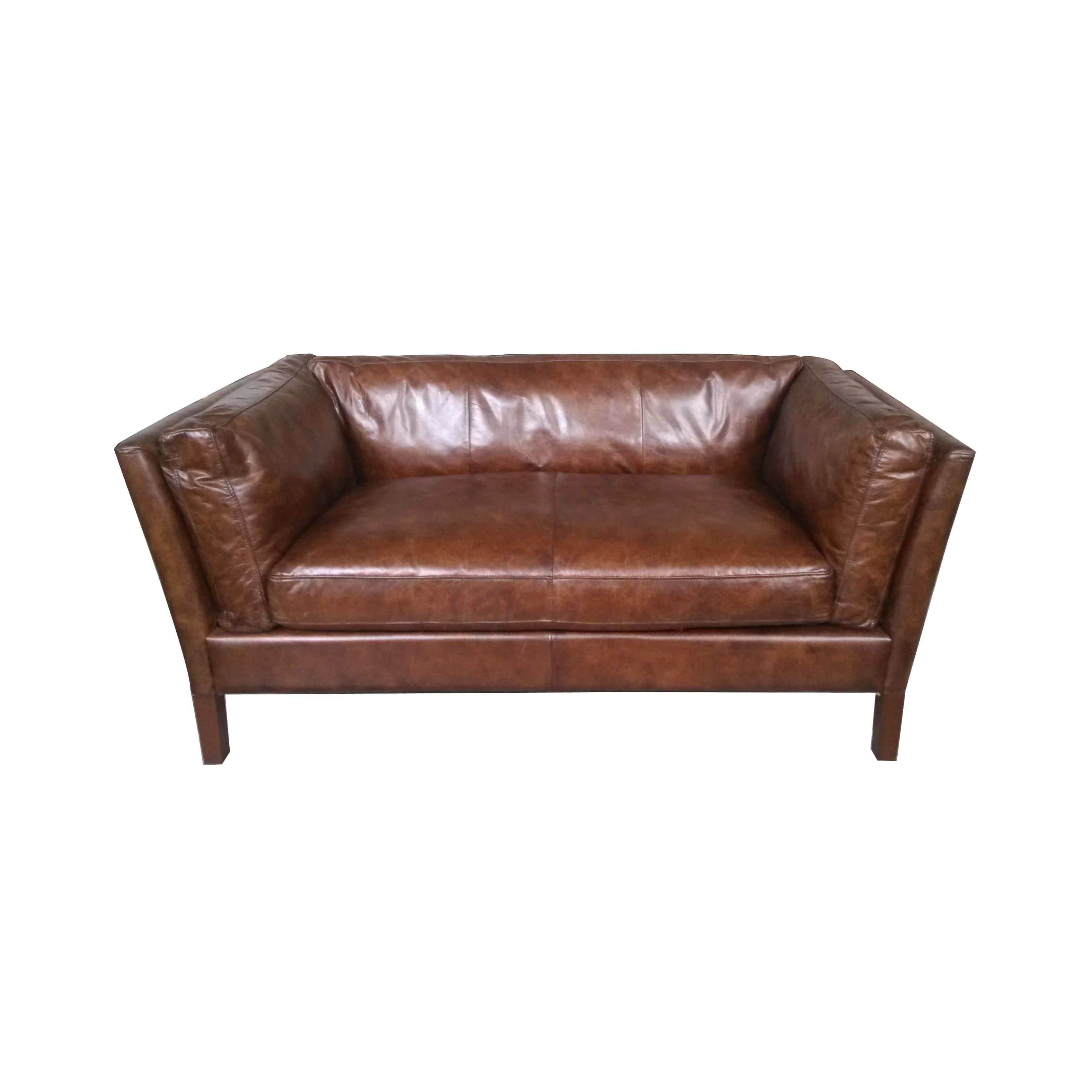 Конструкция опирается на прочный каркас из натуральной древесины и качественной фанеры, гарантируя долговечность. Обивка из премиальной экокожи имитирует фактуру состаренной натуральной кожи, добавляя изделию винтажный шарм и уникальность.
