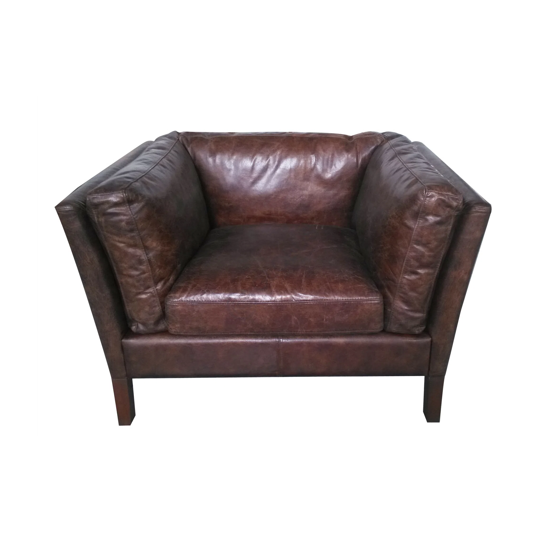 Каркас изделия изготовлен из прочного натурального дерева и качественной фанеры, обеспечивая надежность и долговечность конструкции на долгие годы. Особое внимание уделено отделке: обивка выполнена из искусственной кожи премиум-класса, имитирующей фактуру и глубину цвета натурального материала с благородным эффектом состаренности. Подобная обработка придает предмету уникальный, неповторимый характер.