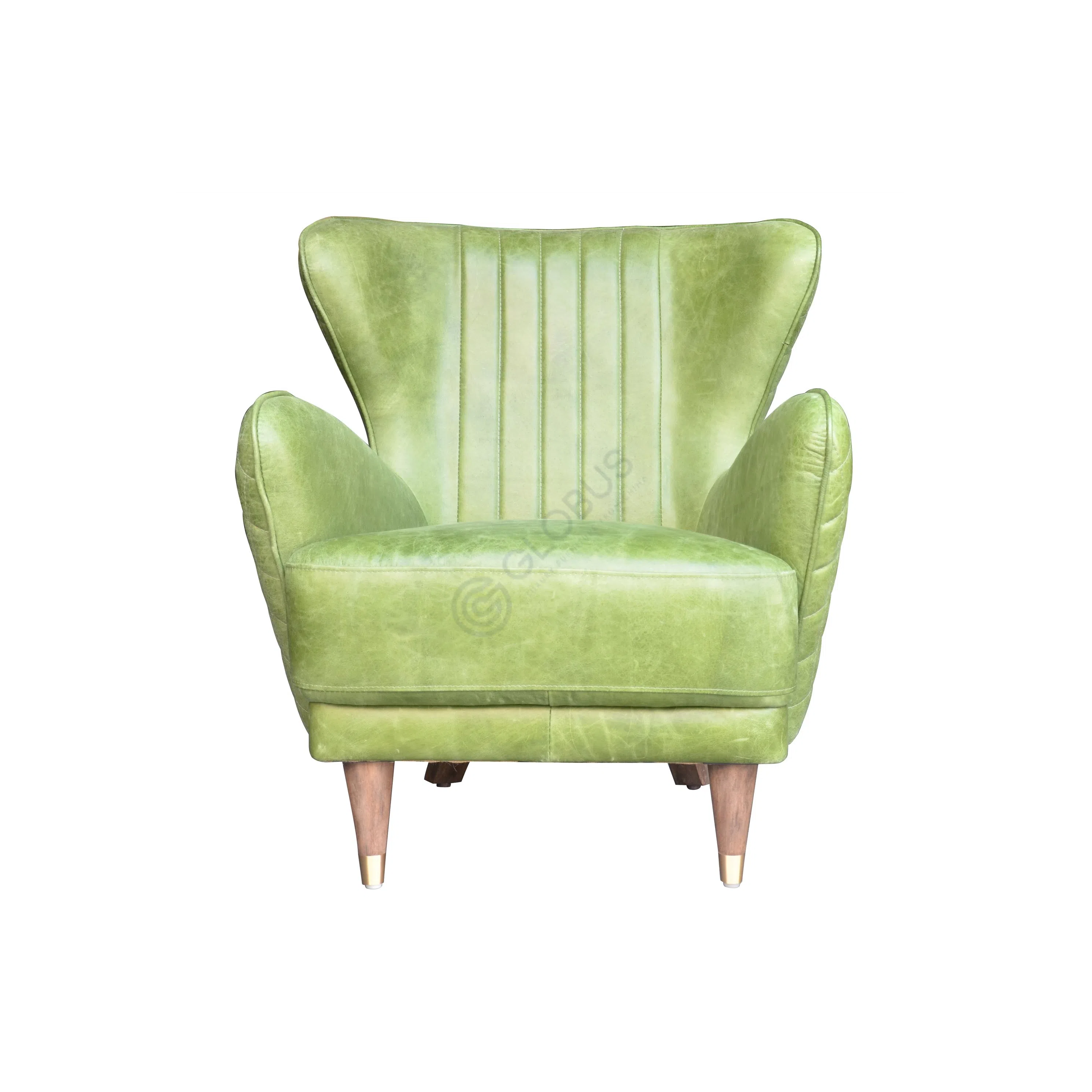 Предмет мебели сразу приковывает взгляд своим уникальным, выразительным силуэтом и глубоким зеленым оттенком. Его изогнутая форма и характерная спинка с боковыми выступами создают приглашающее и стильное присутствие, сочетая комфорт и ноты винтажного шарма в современном прочтении.