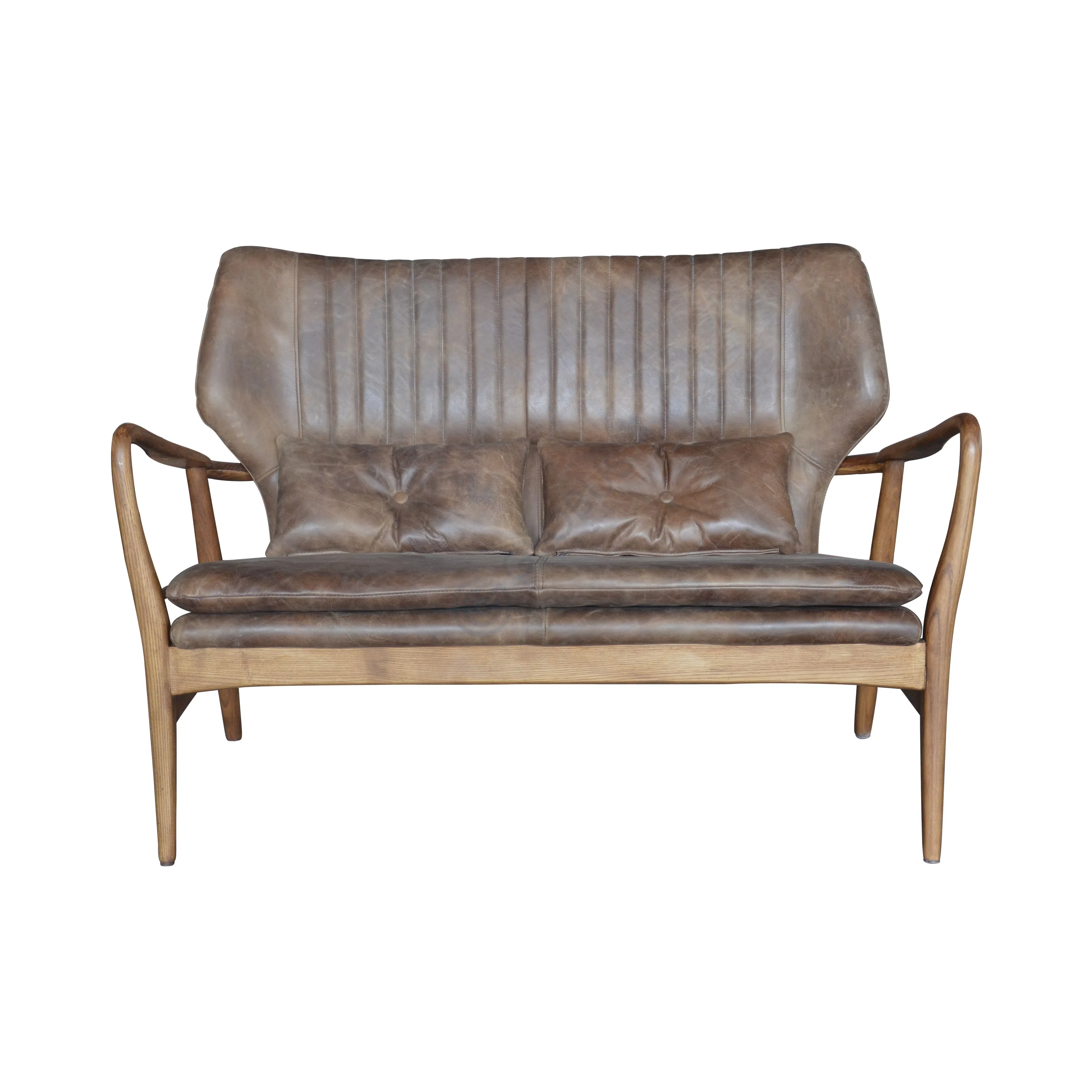 Основа изделия выполнена из массива натурального дерева, чья текстура и теплый оттенок подчеркивают связь с природой. Изящные изгибы подлокотников и ножек демонстрируют мастерство исполнения. Обивка из высококачественной экокожи приятна на ощупь и обладает благородным внешним видом с легким эффектом старины, гармонично дополняя естественную фактуру древесины.