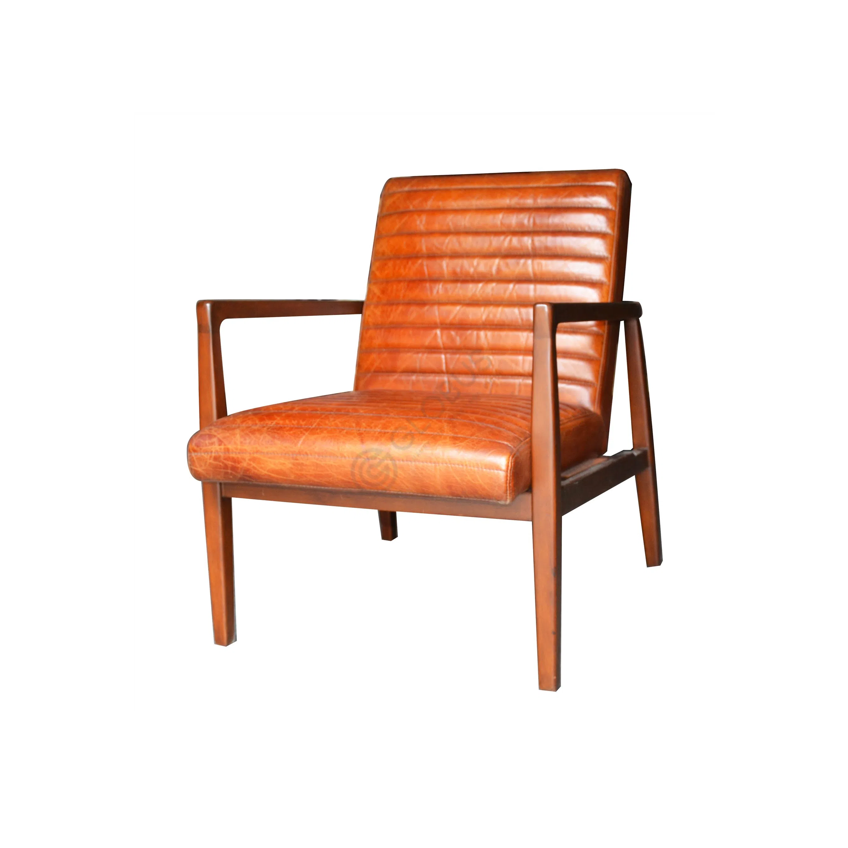 Каркас этого предмета мебели изготовлен из натурального дерева, что гарантирует его прочность и долговечность, создавая надежную основу. Сиденье обтянуто качественной экокожей с приятной фактурой, напоминающей винтажный материал, добавляя изделию особый характер и комфорт. Аккуратная прострочка на поверхности подушки подчеркивает внимание к деталям.