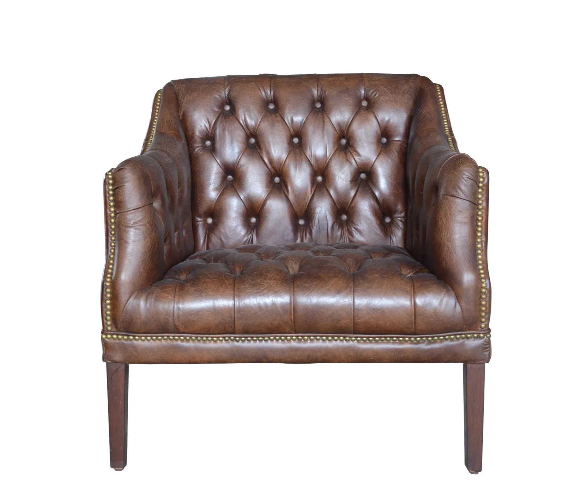 Этот элегантный предмет мебели сразу привлекает взгляд своим насыщенным коричневым оттенком. Его классический дизайн, вдохновленный стилем Честерфилд, гармонично сочетается с эстетикой лофта, создавая выразительный акцент в пространстве. Глубокая стежка с пуговицами на спинке и сиденье придает изделию изысканный объем и подчеркивает его утонченность.
