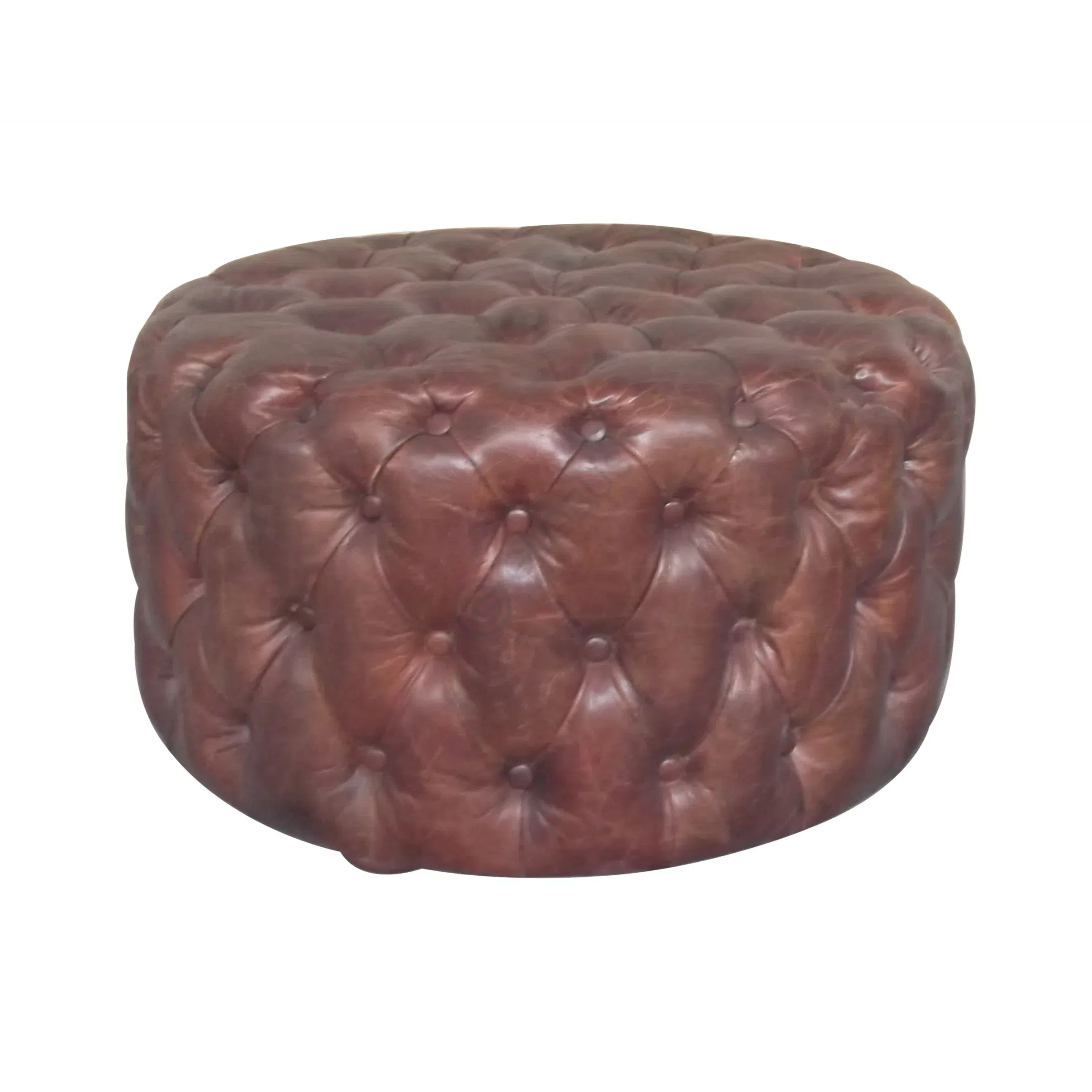 Этот предмет мебели представляет собой элегантный пуф цилиндрической формы. Его обивка выполнена из качественной экокожи насыщенного коричневого оттенка. Глубокая стяжка, оформленная пуговицами, придает изделию классический вид, гармонично сочетающийся с эстетикой лофта. Фактура материала и рельефный узор создают визуальный интерес и ощущение уюта.