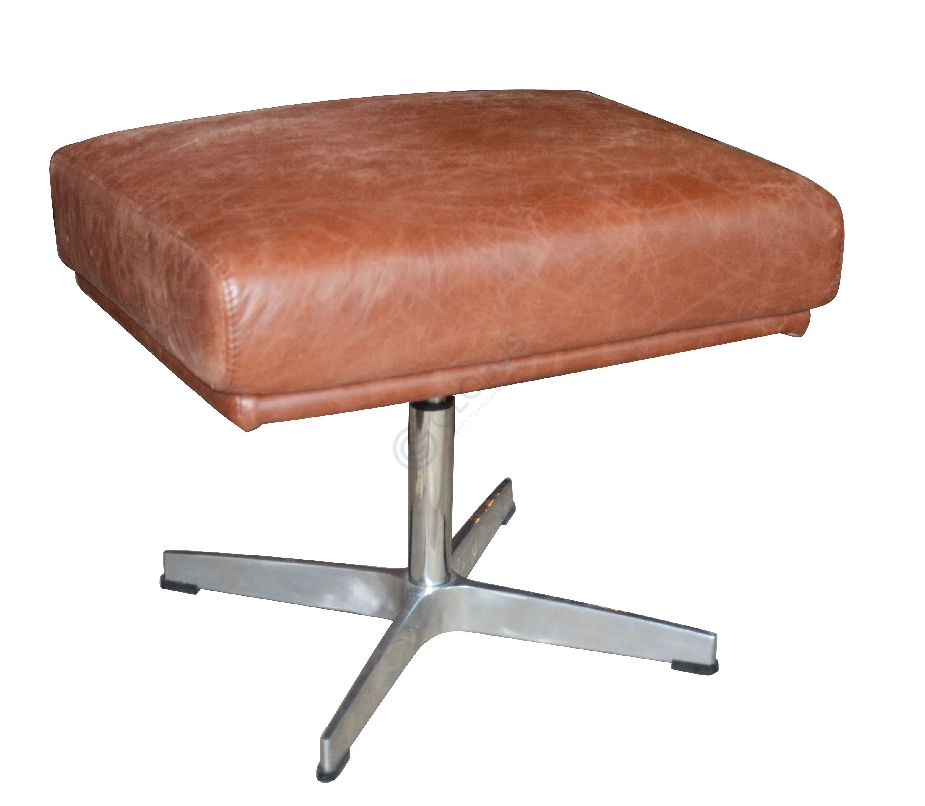 Каркас изделия изготовлен из натурального дерева и прочной фанеры, что обеспечивает его долговечность и устойчивость. Внешняя отделка выполнена из высококачественной экокожи теплого оттенка, чья фактура добавляет винтажной элегантности и приятна на ощупь. Основание представляет собой надежную металлическую опору, гарантирующую стабильность и позволяющую креслу свободно вращаться.