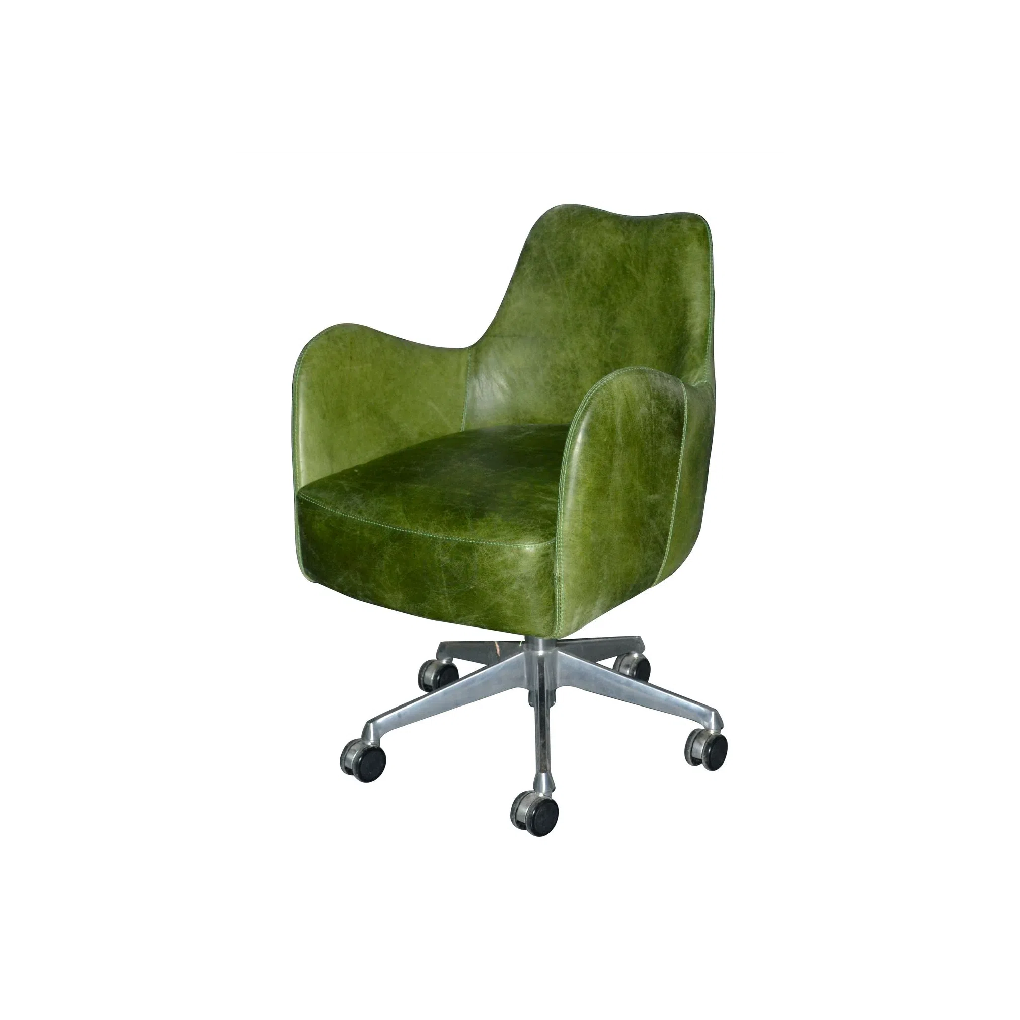 Его эргономичное сиденье, выполненное из фанеры, окутано приятной на ощупь экокожей с изысканным фактурным узором. Плавные линии спинки и подлокотников образуют цельный, обволакивающий контур, обеспечивая высокий уровень комфорта во время работы.