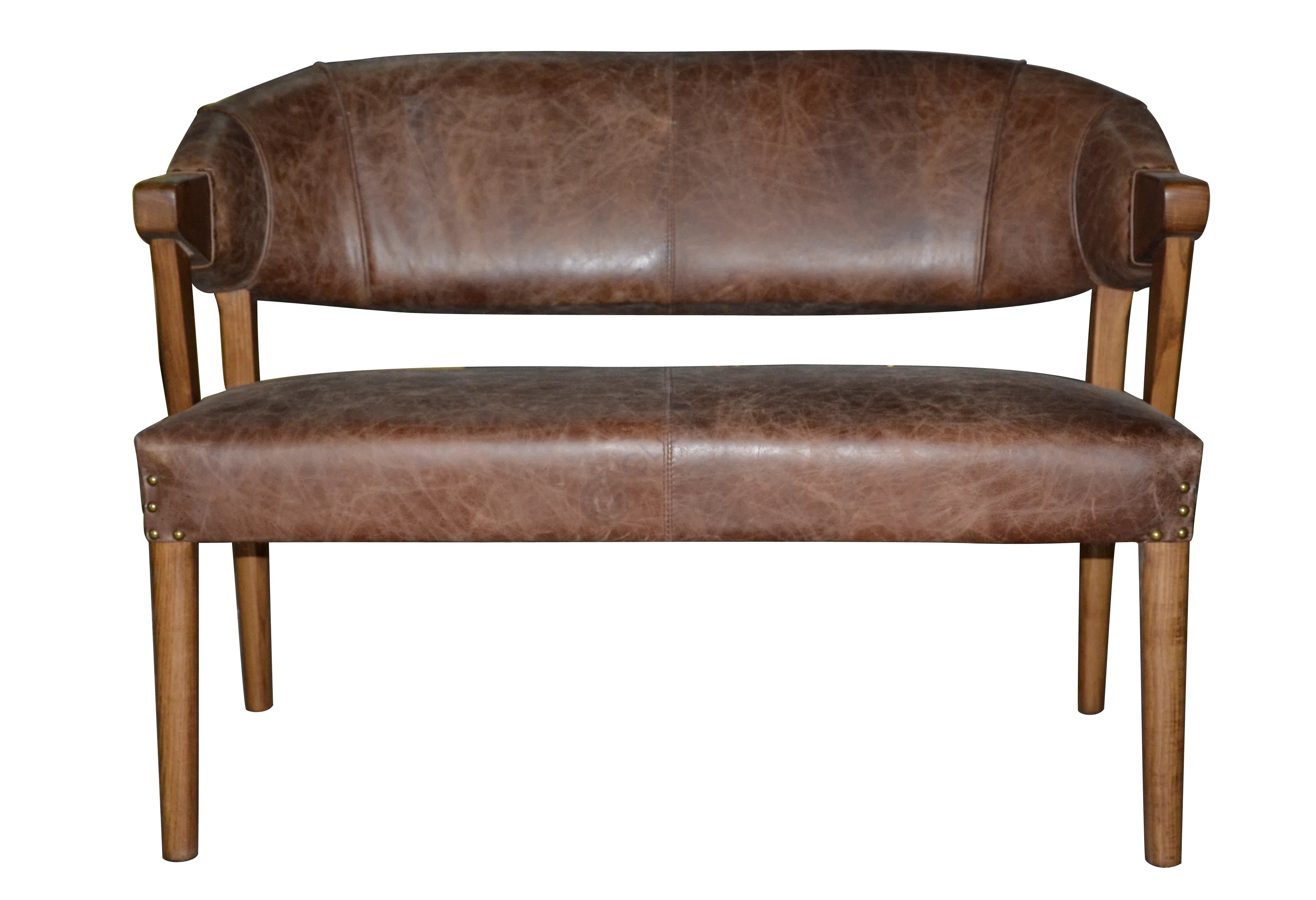 Сиденье и спинка изделия обтянуты качественной экокожей насыщенного оттенка, которая приятна на ощупь и легка в уходе. Отличительной чертой дизайна служат декоративные металлические заклепки, аккуратно расположенные по контуру обивки, добавляя предмету особый характер и винтажный акцент, присущий индустриальному направлению.