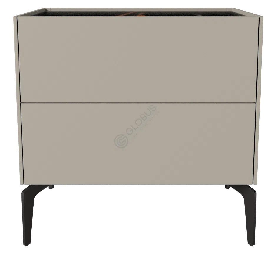Основа изделия выполнена из высококачественного ХДФ, что обеспечивает прочность и долговечность конструкции. Столешница из спеченного камня придает поверхности исключительную стойкость к внешним воздействиям и добавляет нотку благородства. Легкость и устойчивость силуэту придает каркас из углеродистой стали, подчеркивающий современную эстетику.