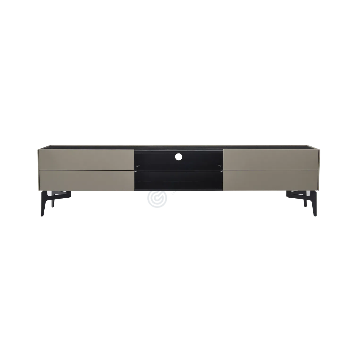 Его элегантный силуэт определяется чистыми линиями и геометрическими формами, характерными для актуального стиля. Корпус изготовлен из плиты ХДФ, что обеспечивает гладкость поверхностей и долговечность конструкции.