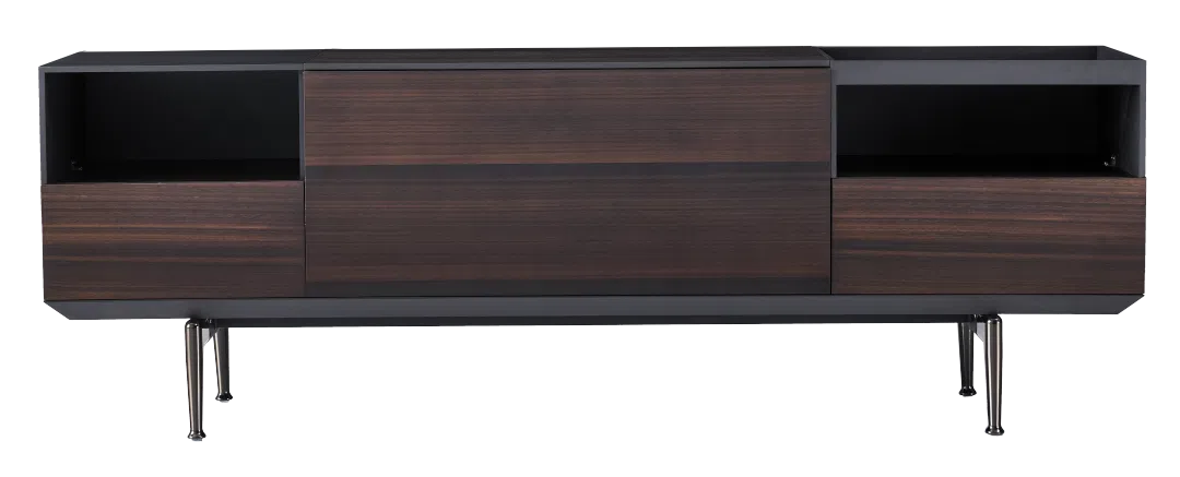 ТВ тумба выполнена из высококачественных материалов, таких как ХДФ, нержавеющая сталь и железо, что обеспечивает её долговечность и устойчивость. Современный дизайн гармонично впишется в интерьер гостиной или спальни, добавляя элегантности и стиля. Просторные отделения и полки позволяют удобно разместить технику и аксессуары, сохраняя порядок и организованность. Металлические ножки придают конструкции легкость и визуальную привлекательность, делая её идеальным дополнением к любому современному пространству.