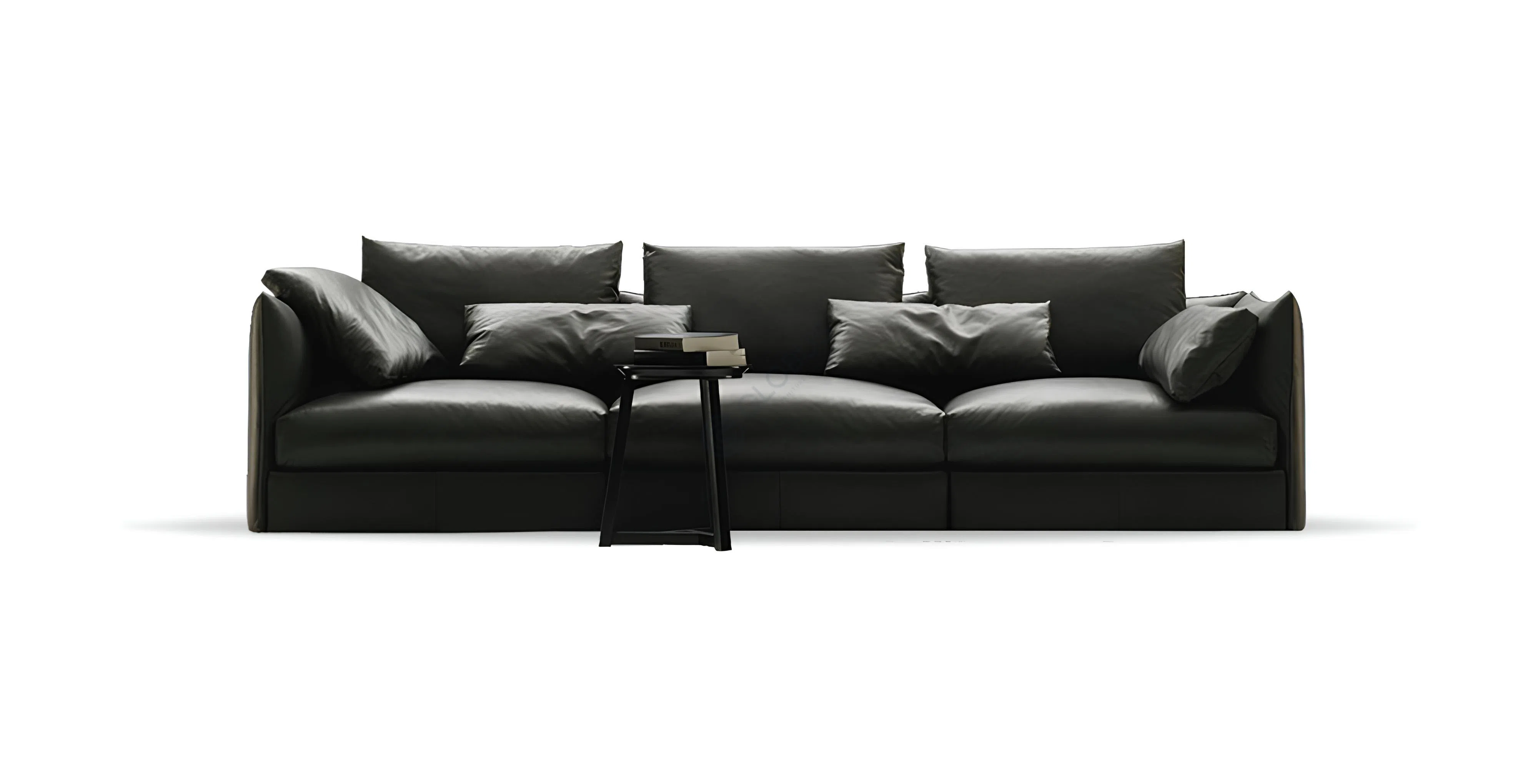 Уникальность столика заключается в его составной конструкции: две части разного размера и высоты легко перемещаются, позволяя адаптировать их положение под текущие нужды. Это дает возможность создать как единую композицию, так и использовать элементы по отдельности, добавляя гибкости в оформление зоны отдыха. Такое решение не только практично, но и служит интересным визуальным акцентом.