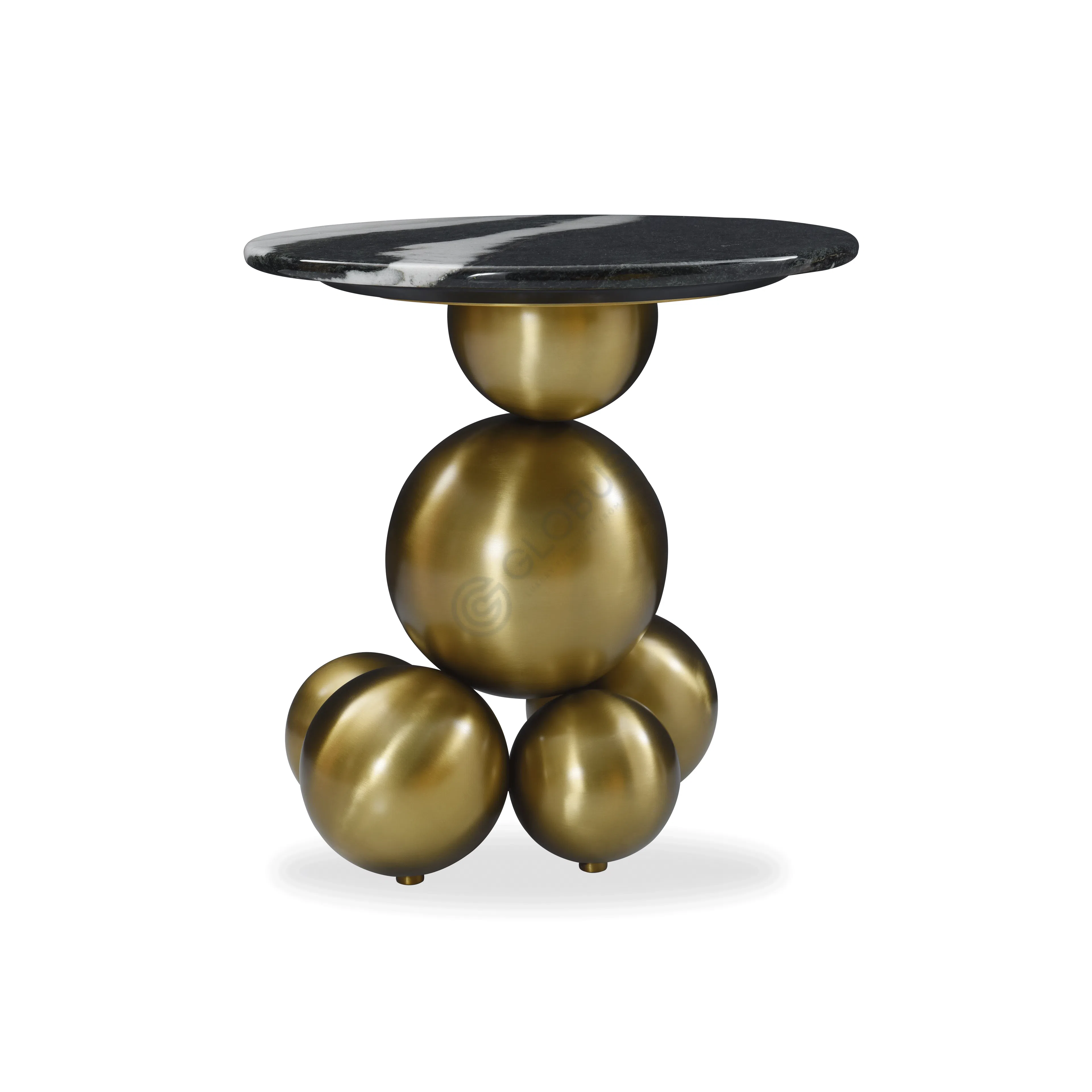 Представляем собой воплощение современного искусства и функциональности. Этот журнальный столик привлекает внимание своей уникальной формой и изысканным исполнением. Основание композиции составляют элементы округлой формы, выполненные из сияющей нержавеющей стали, которые создают динамичный и эффектный скульптурный образ.