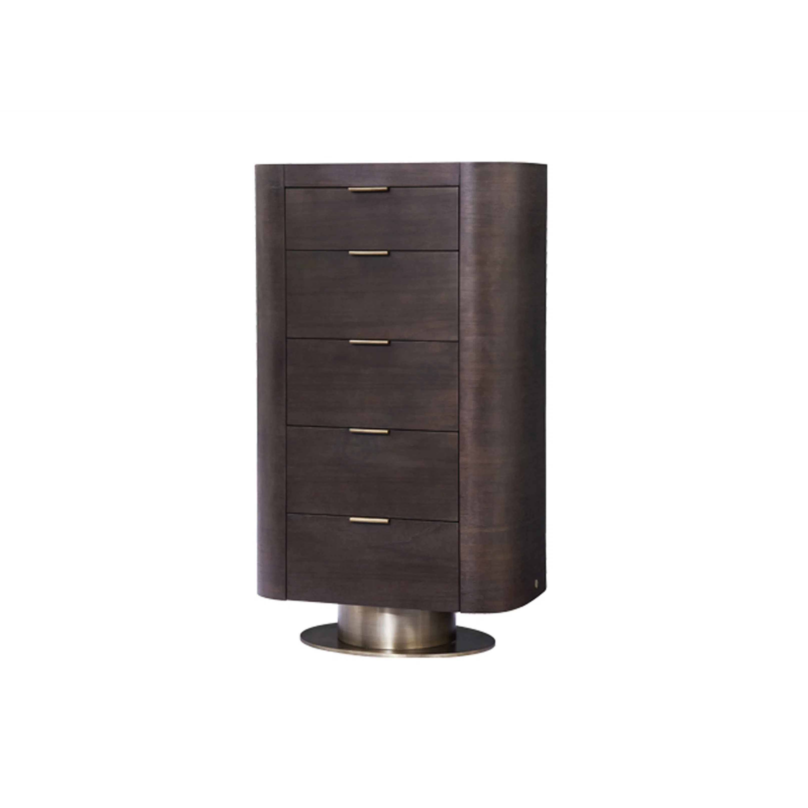Элегантный комод с гармоничной комбинацией шпона и фанеры воплощает собой современный взгляд на стиль ар-деко. Сдержанный глубокий оттенок дерева подчеркивает выразительность силуэта, а округлые формы создают ощущение легкости и мягкости.