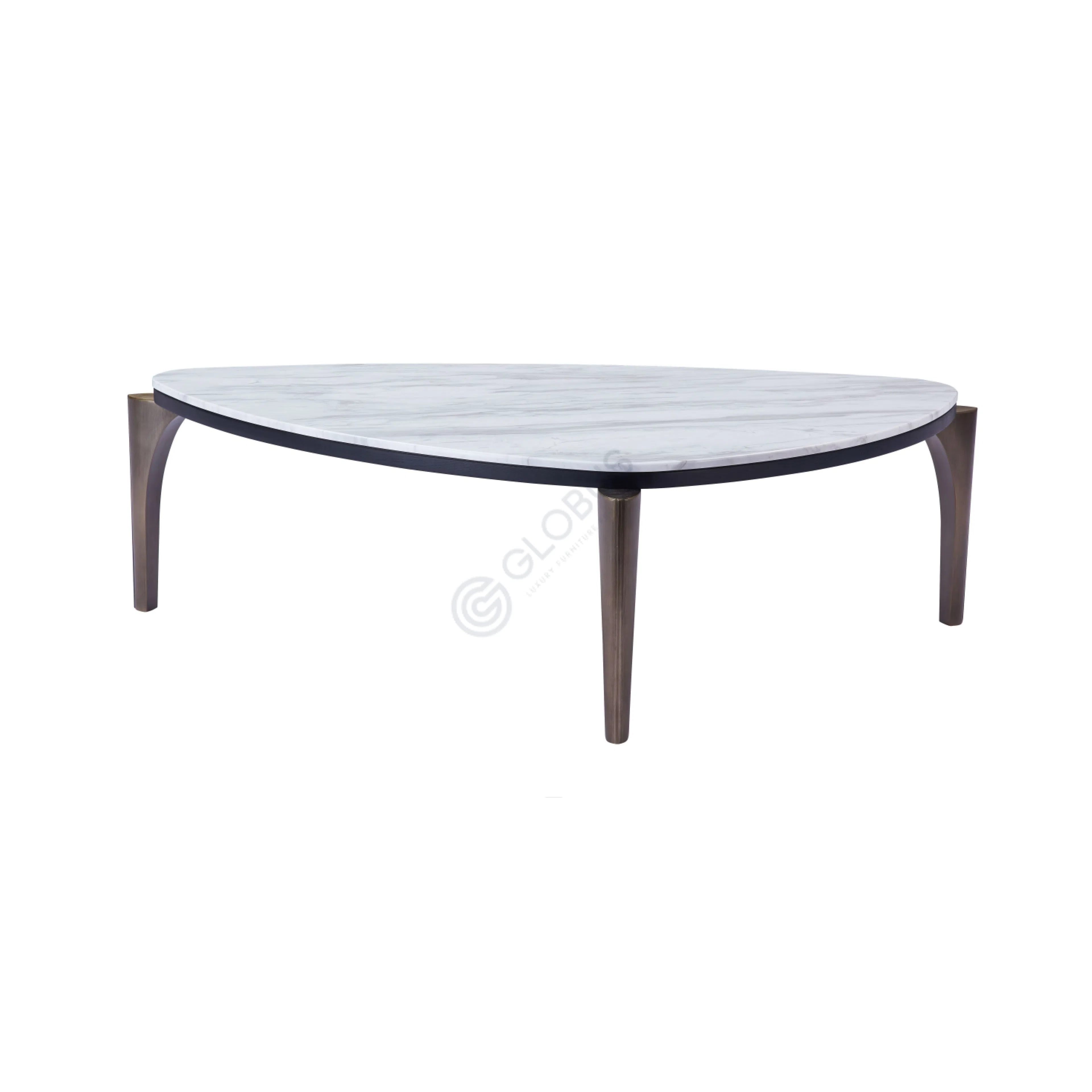 Сохраняя чистоту линий и декоративную минималистичность, этот столик обладает уникальной формой, вдохновленной современным дизайном. Подчеркивая изящество мрамора, стальные ножки добавляют лаконичный акцент, дополняя общий современный вид.