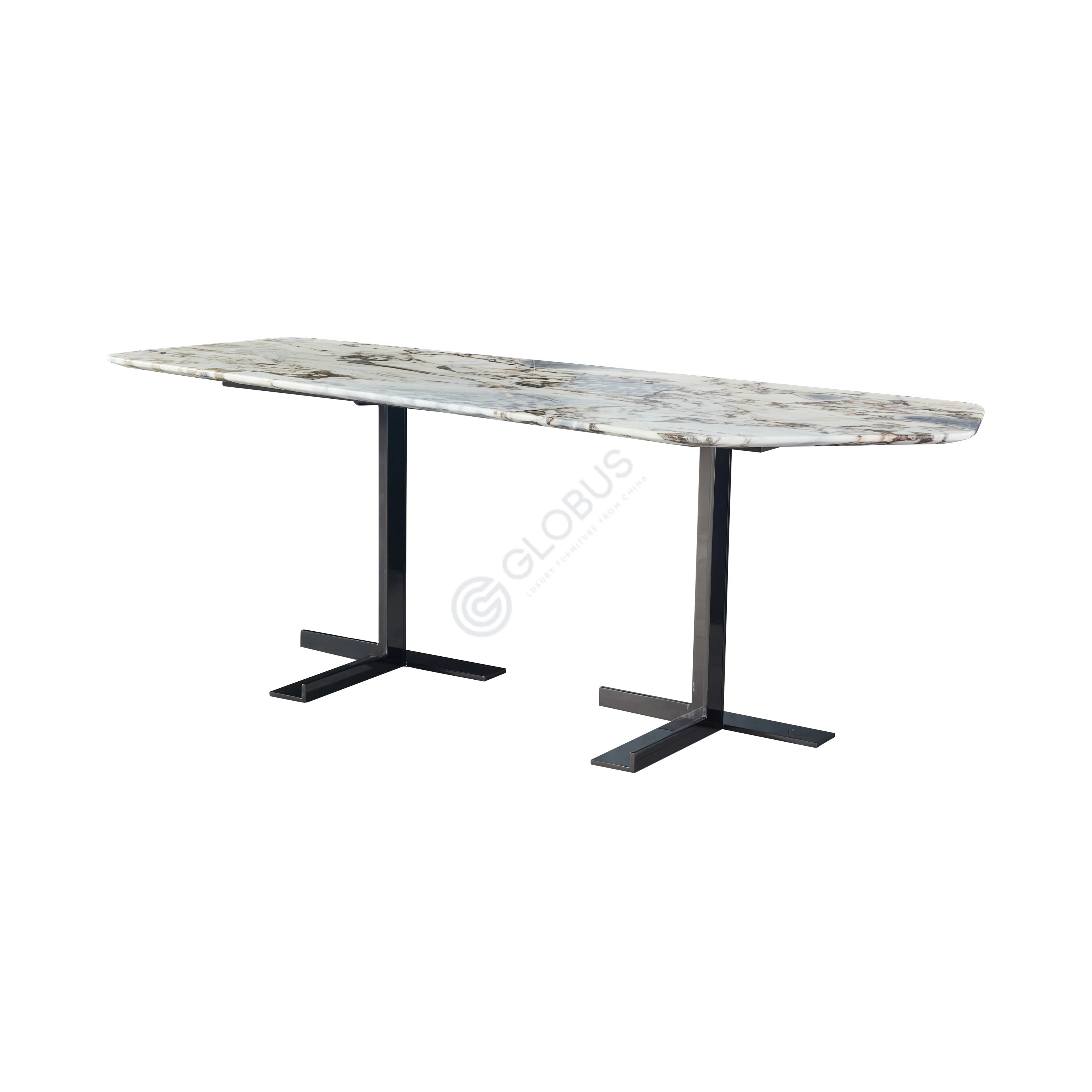 Угловой столик отличается стильным дизайном и элегантными линиями, которые прекрасно вписываются в любое современное пространство. Его поверхность выполнена из качественного материала с эффектом мрамора, что придает изделию изысканность и роскошь. Устойчивая металлическая опора обеспечивает надежность и долговечность, добавляя интерьеру современный акцент. Этот столик станет функциональным дополнением, позволяющим создать уютную атмосферу, а также удобно разместить мелкие предметы и напитки. С его помощью легко организовать пространство в комнате, не теряя при этом в эстетике.