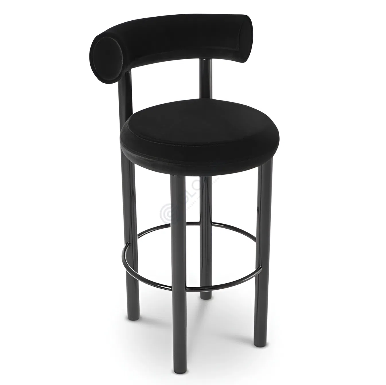 Каркас изделия создан из прочной фанеры, обеспечивая надежную основу для комфортного сиденья и изящной спинки. Обивка выполнена из тактильно приятного текстиля, придающего объем и мягкость поверхностям. Опоры из углеродистой стали окрашены в темный оттенок, контрастирующий со светлой обивкой и добавляющий графичности общему облику.