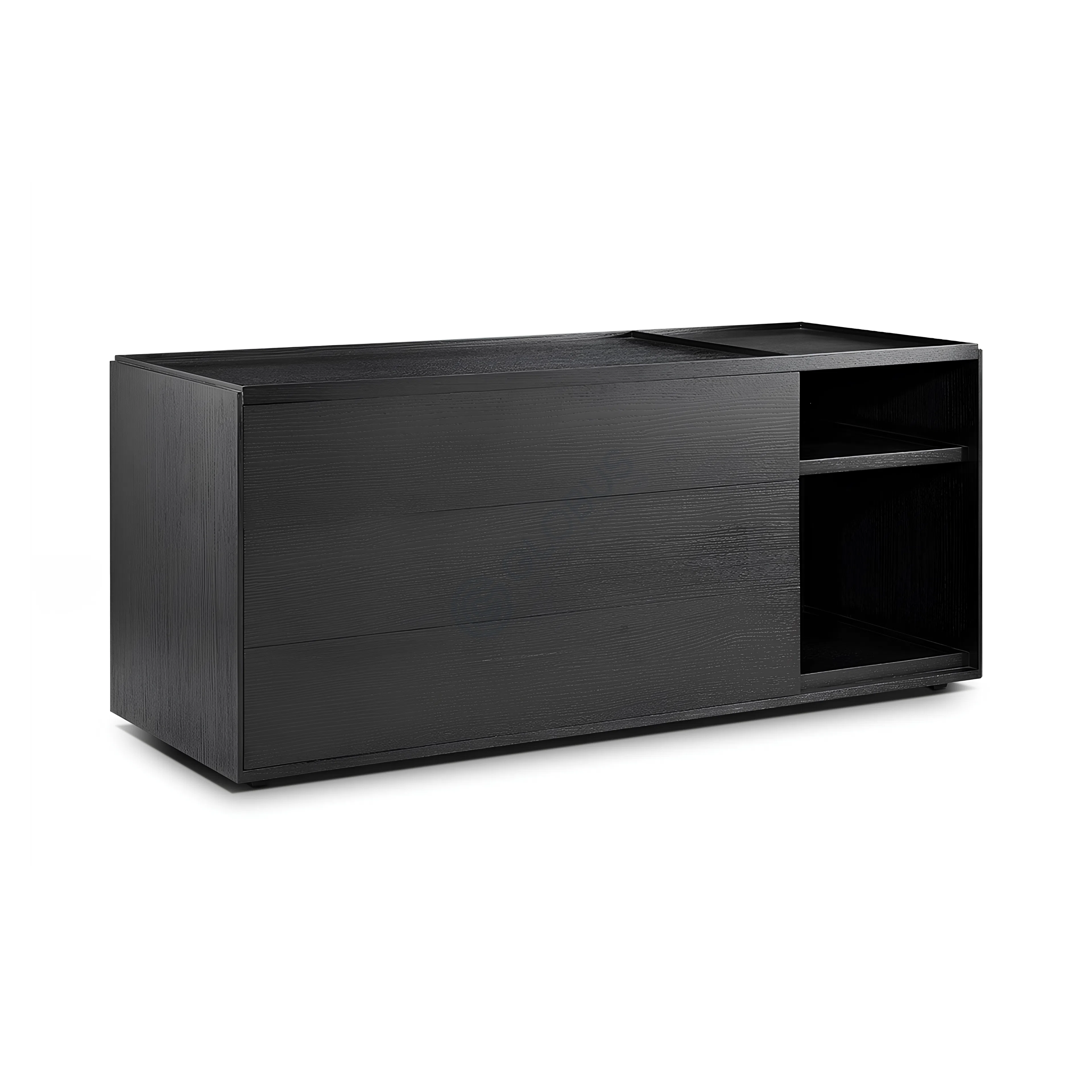 Продуманная конструкция включает удобную верхнюю поверхность, обрамленную деликатным бортиком – идеальное место для размещения лампы или личных вещей. Открытые ниши предоставляют легкий доступ к книгам или декору, а вместительные выдвижные ящики скрывают содержимое от посторонних глаз, поддерживая порядок в спальне.