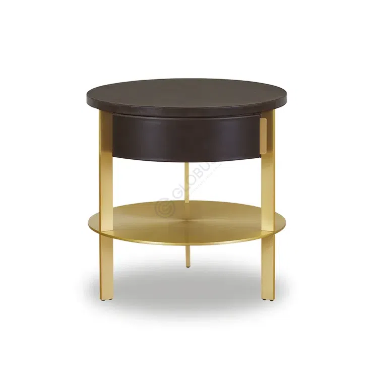 Тонкие металлические ножки с латунным покрытием придают изделию утонченность, а встроенные прикроватные полки на уровне головы создают функциональную зону хранения без дополнительных деталей. Материал обивки приятен на ощупь и легко очищается от повседневных загрязнений.