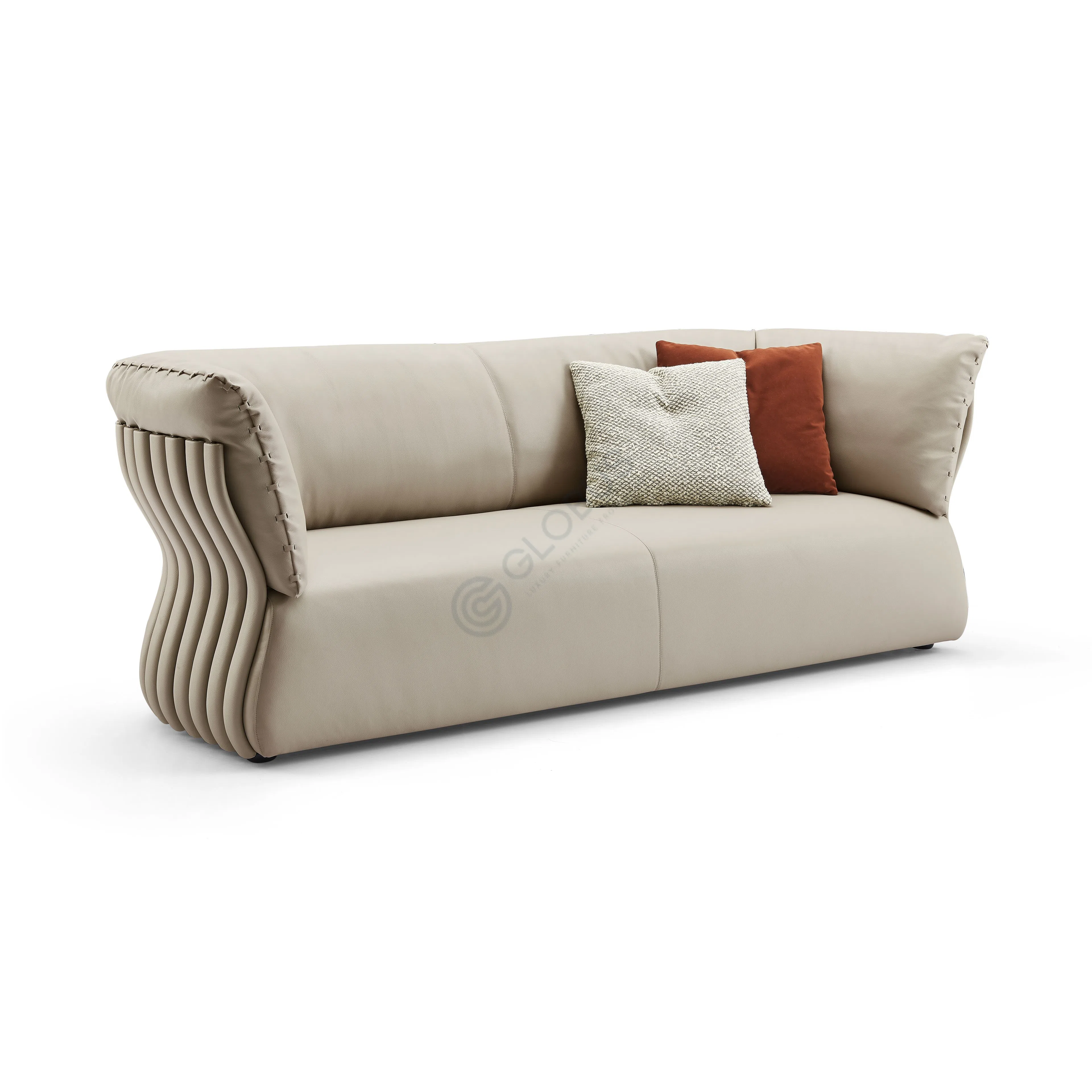 Этот предмет мебели — истинное воплощение современного стиля и элегантности. Его необычный, обволакивающий силуэт притягивает взгляд, а выразительная спинка с вертикальными объемными складками создает уникальный визуальный ритм, добавляя динамики и изысканности. Плавные линии и мягкие формы делают его заметным акцентом в интерьере, демонстрируя тонкий вкус и актуальные дизайнерские решения.