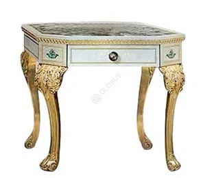 Журнальный столик, выполненный из натурального дерева, является ярким примером роскоши и утончённого вкуса. Элегантная форма и декоративные элементы из ракушки придают ему особое очарование, создавая атмосферу уюта в любом интерьере. Особенностью изделия является изысканная отделка сусальным золотом, которая придаёт дополнительную сияющую ноту. Нежные узоры, гармонично вписывающиеся в общий дизайн, подчеркивают мастерство ручной работы и внимание к деталям. Этот столик станет идеальным акцентом в жилом пространстве, добавляя изящества и стиля.