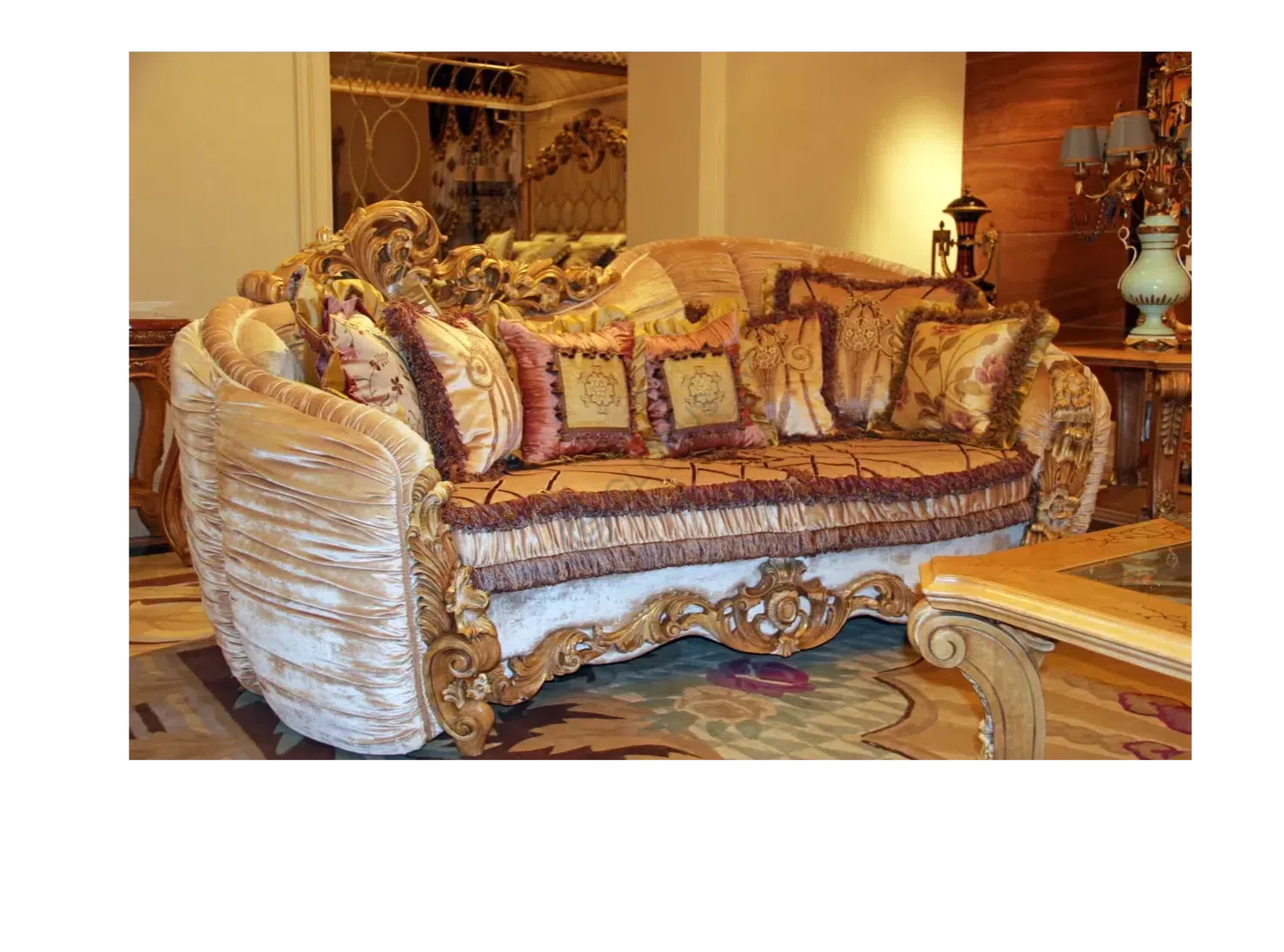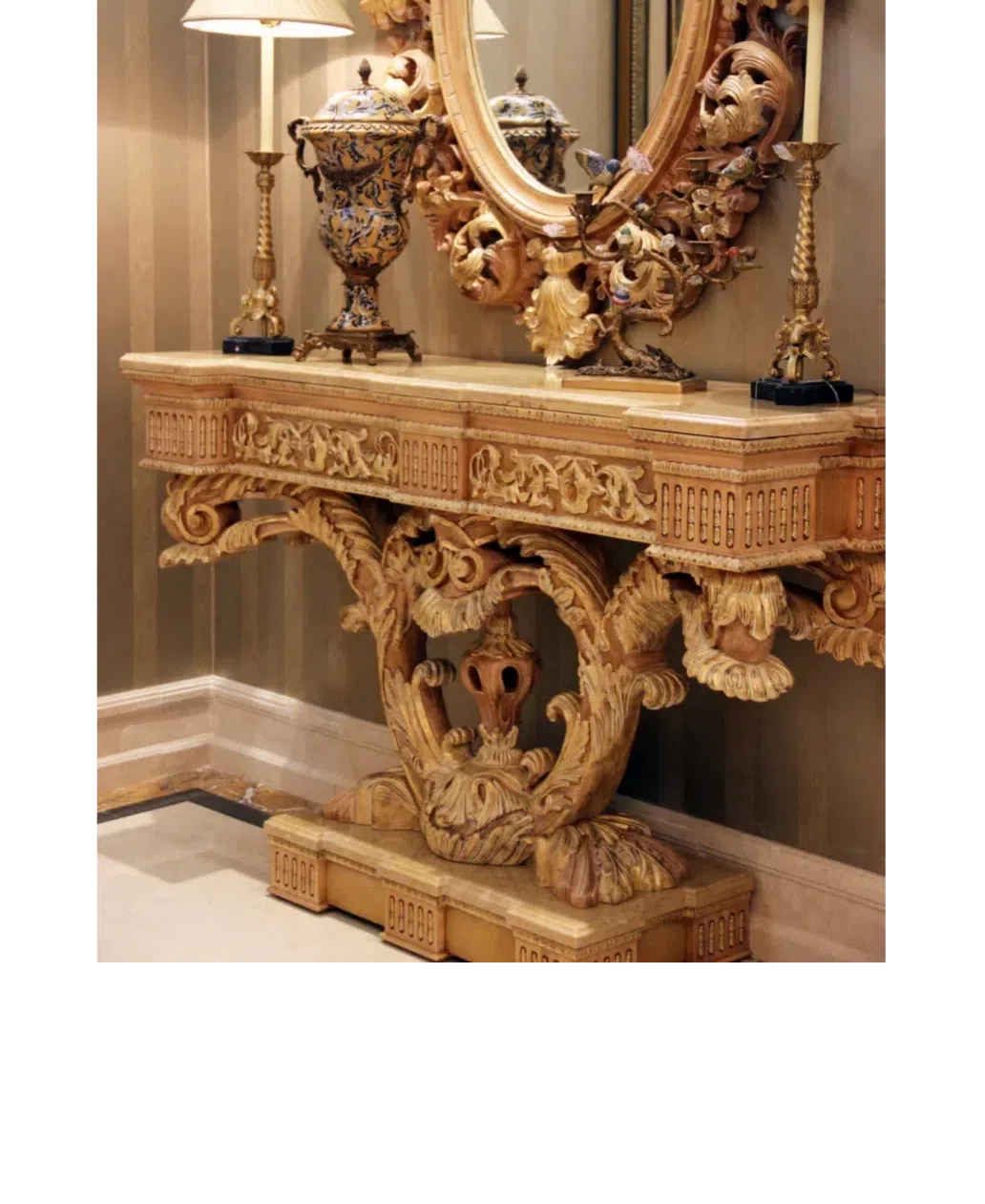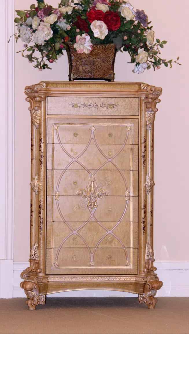 Этот предмет мебели являет собой воплощение дворцовой роскоши и изящества, словно перенесенный из парадных залов минувших эпох. Каждая деталь пронизана духом величия стилей барокко и рококо, привнося в пространство атмосферу утонченности и благородства. Его присутствие преображает интерьер, делая его по-настоящему изысканным и завершенным.