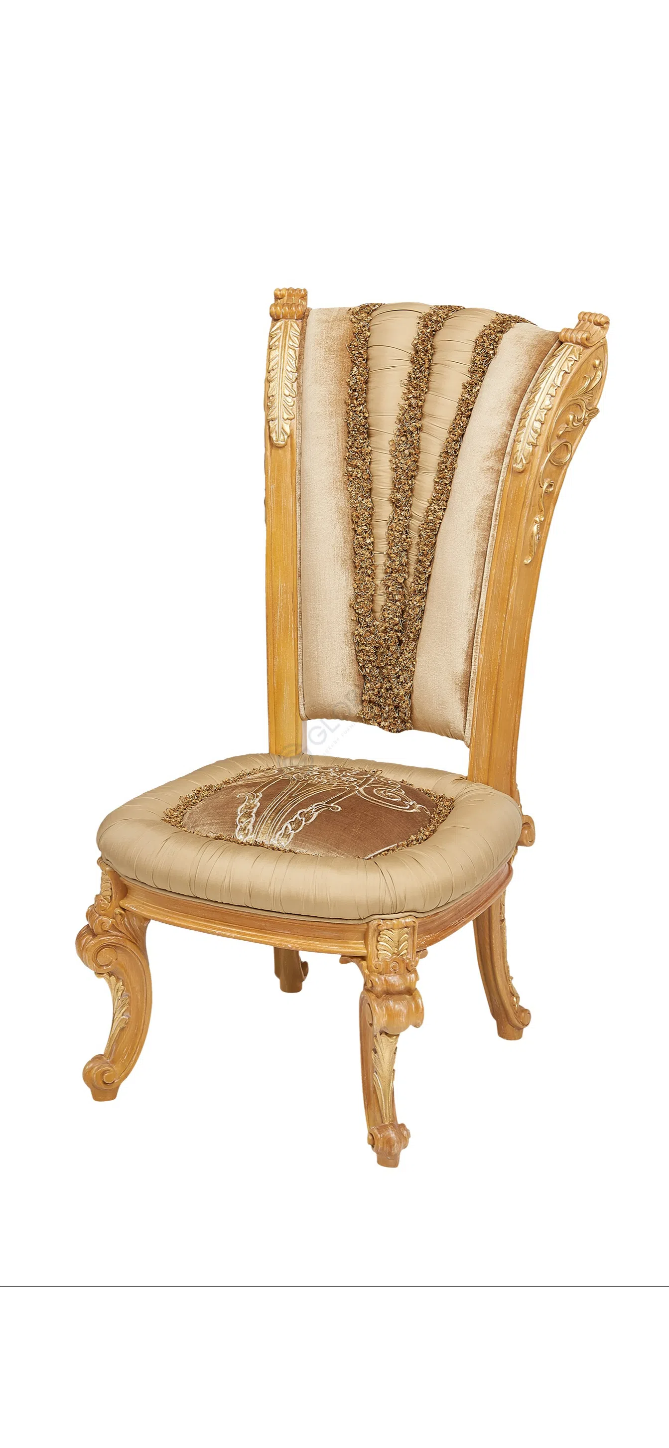 Этот стул для дома станет ярким акцентом в гостиной, добавляя ей роскоши и особого шарма. Его форма и декор идеально вписываются в классические ансамбли, становясь не просто функциональным элементом, но и подлинным произведением мебельного искусства. Он приглашает насладиться моментом, сидя на его мягком, комфортном сиденье.