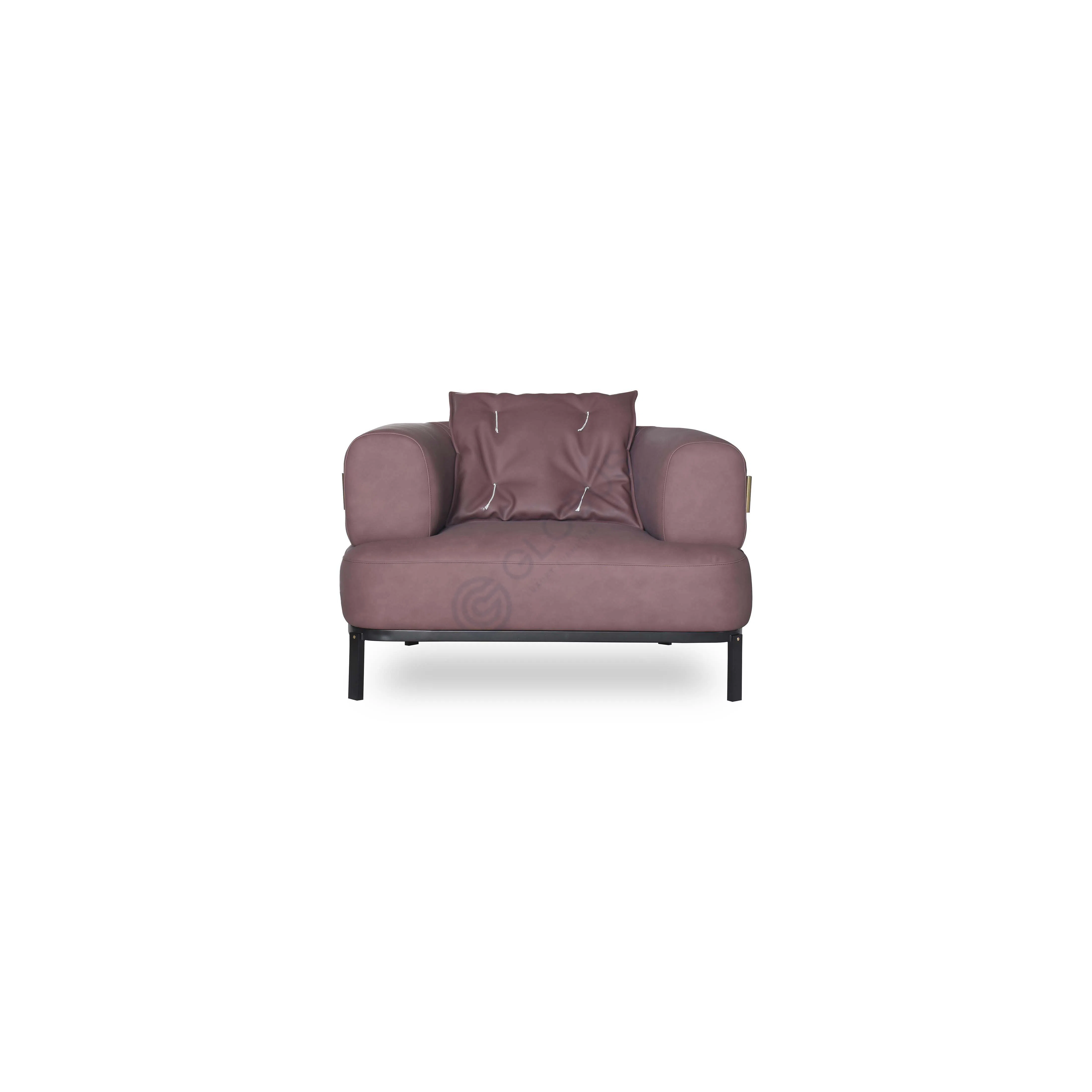 Диван сочетает в себе современный дизайн и практичность. Каркас из натурального дерева и вставки из нержавеющей стали обеспечивают надежность и устойчивость. Мягкая текстильная обивка гармонирует с лаконичными линиями, создавая комфортное и стильное место для отдыха. Подушки с узорчатой текстурой добавляют объем и уют, подчеркивая элегантность модели.