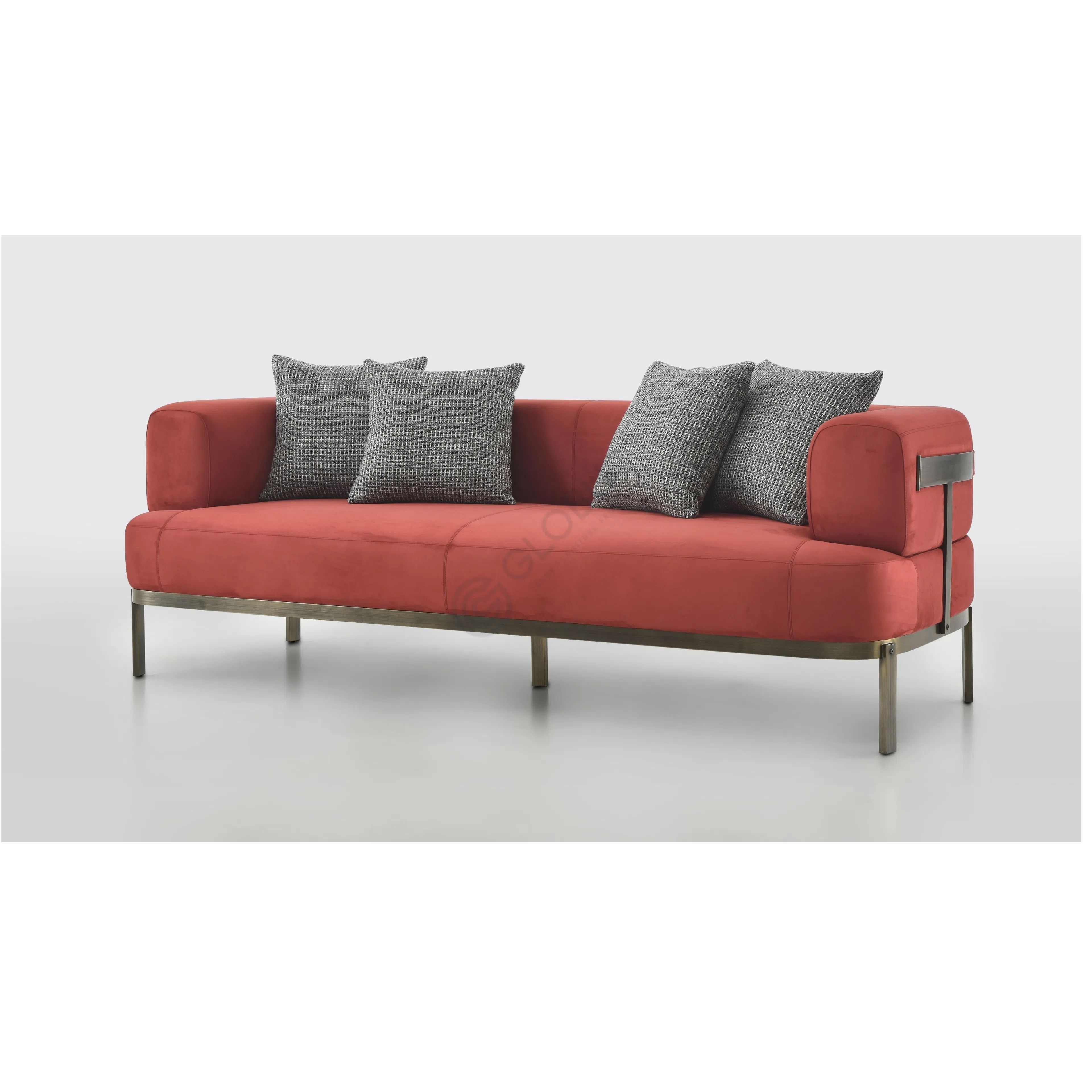 Особое внимание привлекает оригинальное оформление подлокотника: здесь использована экокожа на микрофибре, формирующая уникальный акцент, который придает изделию индивидуальность. Этот элемент гармонично сочетается с тонкими металлическими деталями, подчеркивая современный характер предмета.
