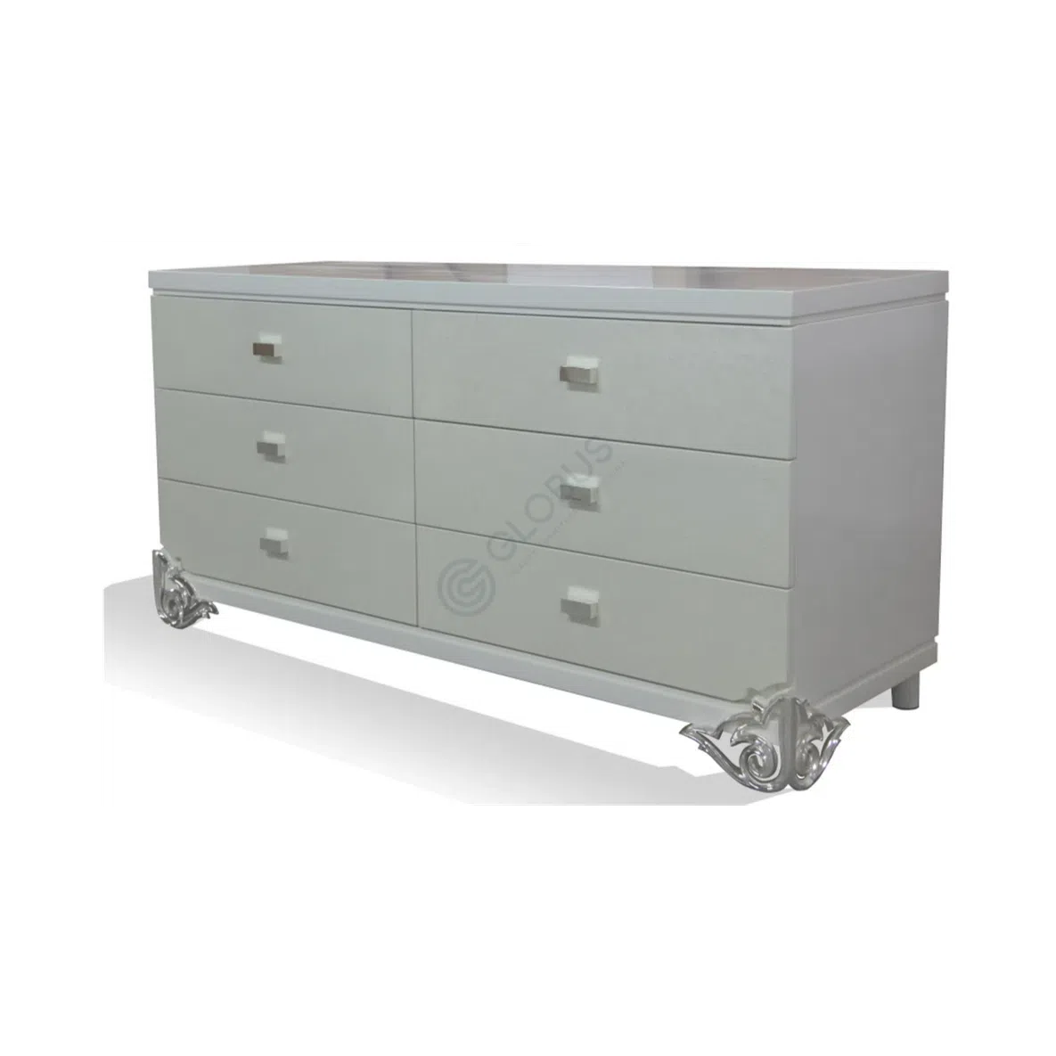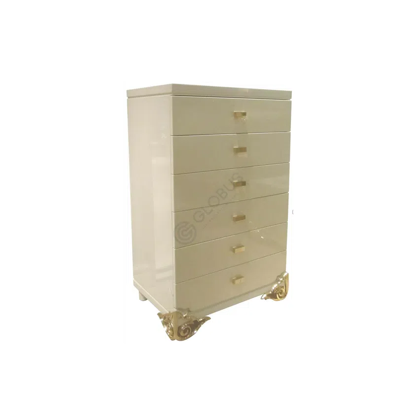 Эта прикроватная тумба представляет собой изысканный элемент меблировки, воплощающий элегантность и утонченность стиля ар-деко. Ее поверхность имеет великолепное глянцевое покрытие нежного оттенка, которое отражает свет, добавляя пространству спальни ощущение простора и легкости. Строгие геометрические линии корпуса прекрасно сочетаются с роскошными декоративными деталями.