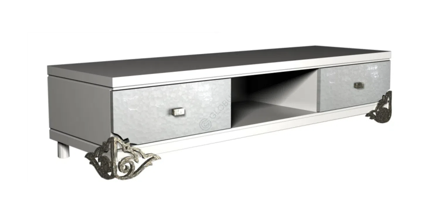 Особое внимание привлекают декоративные опоры с характерным для ар-деко орнаментом, которые придают силуэту легкость и изысканность. Гладкая поверхность фасадов подчеркивает чистоту формы, а минималистичные ручки завершают элегантный образ.