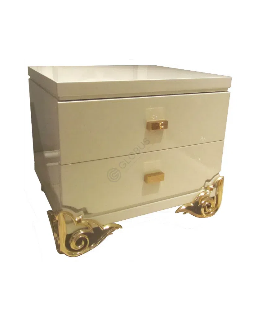 Корпус изделия выполнен из натурального дерева, что гарантирует его долговечность и придает теплоту текстуры. Детали, включая изящные ножки и фурнитуру, созданы из металла. Это контрастное сочетание материалов подчеркивает благородство линий и придает комоду современный вид с классическими отсылками.