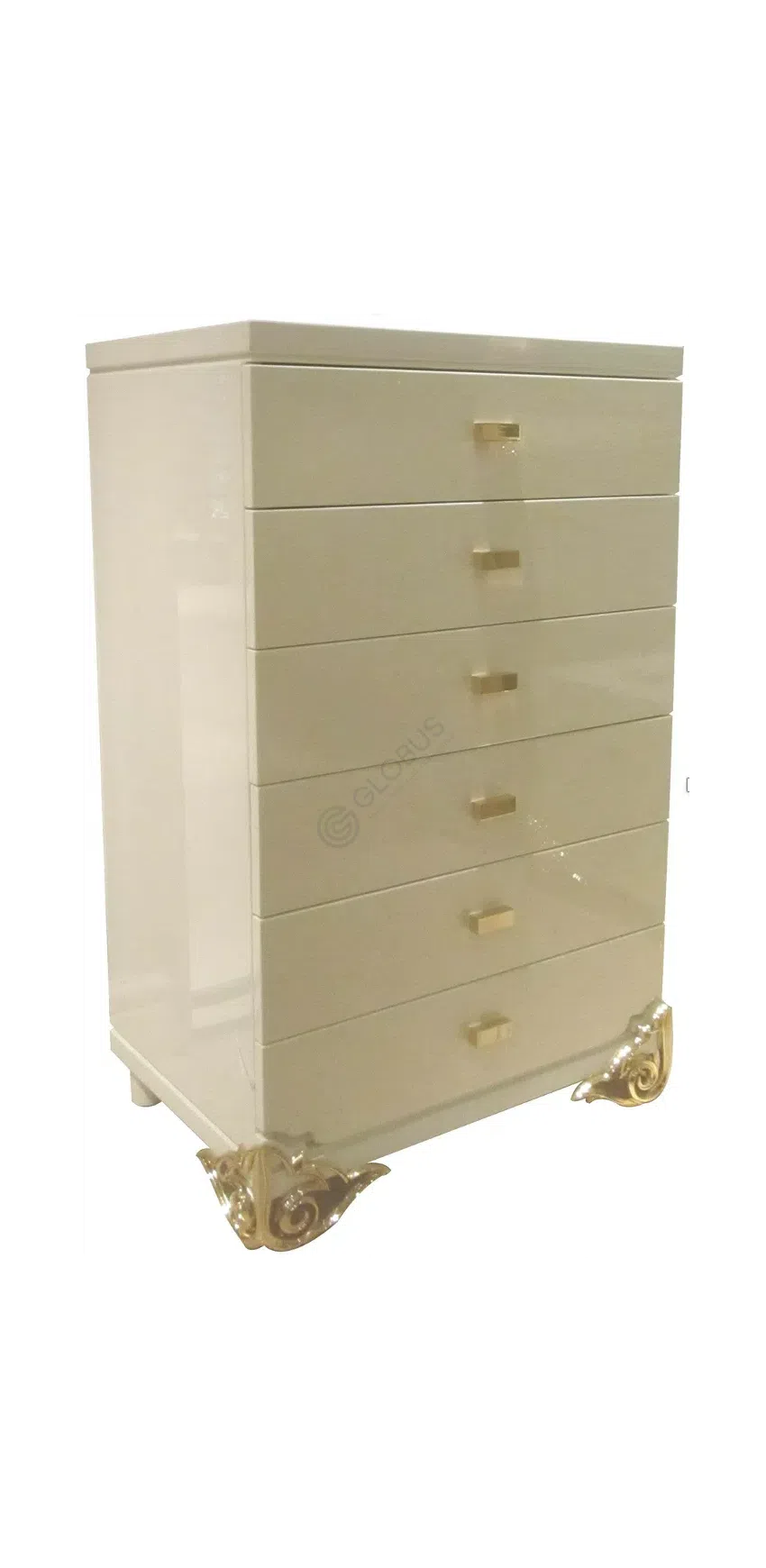 Шесть вместительных выдвижных ящиков обеспечивают удобное хранение, сохраняя безупречный внешний вид изделия. Комод является не просто местом для вещей, но настоящим произведением мебельного мастерства, способным украсить самый взыскательный интерьер.