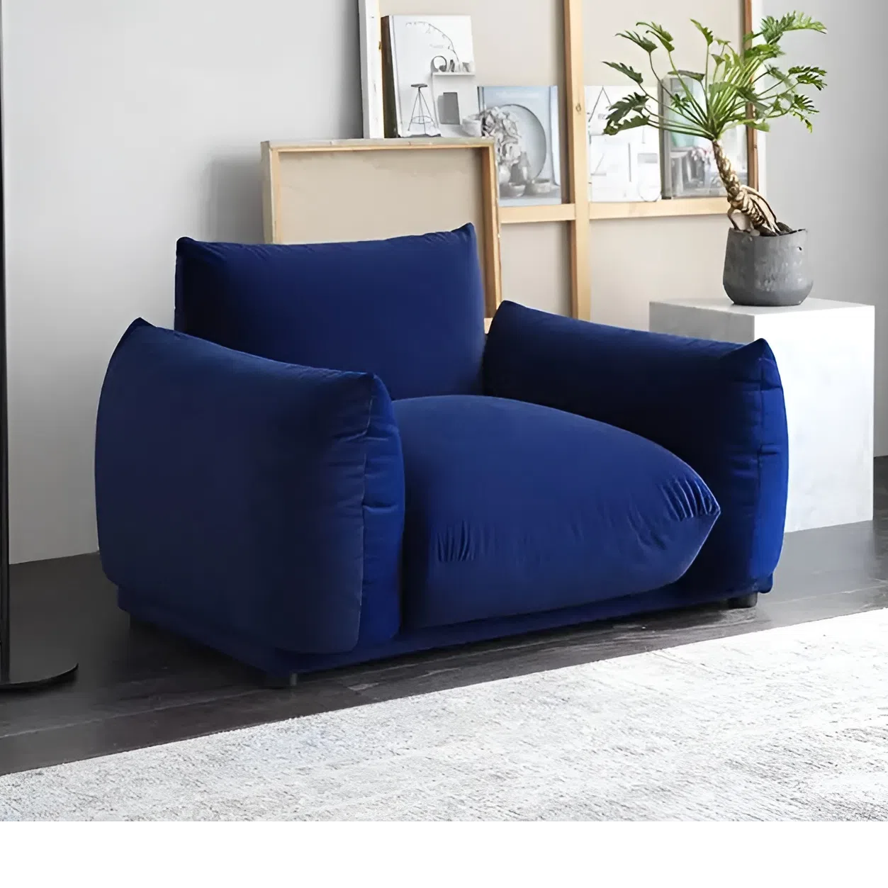 Диван выполнен в современном стиле с использованием натурального дерева и текстиля высокого качества. Глубокий синий оттенок обивки подчеркивает его элегантность и добавляет акцент в интерьер. Мягкие объемные подушки обеспечивают комфорт, а лаконичный дизайн гармонично впишется в любой интерьер. Каркас из дерева придает конструкции надежность и долговечность.