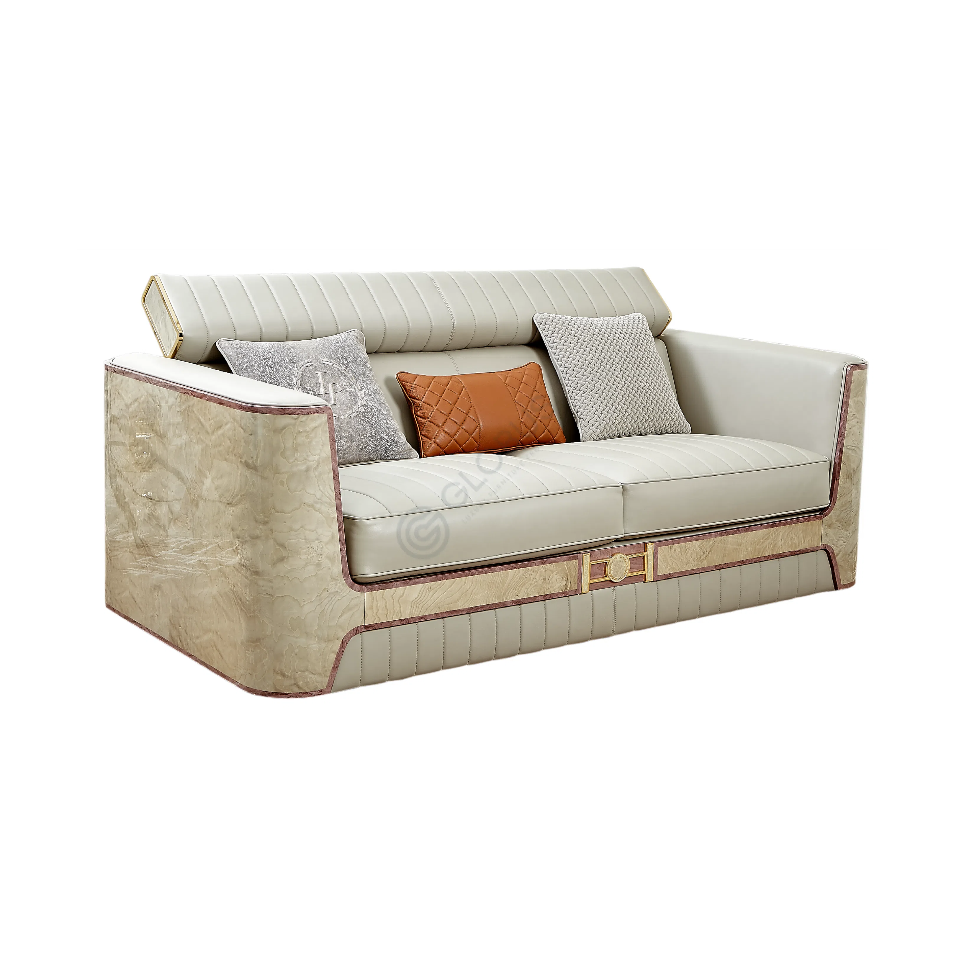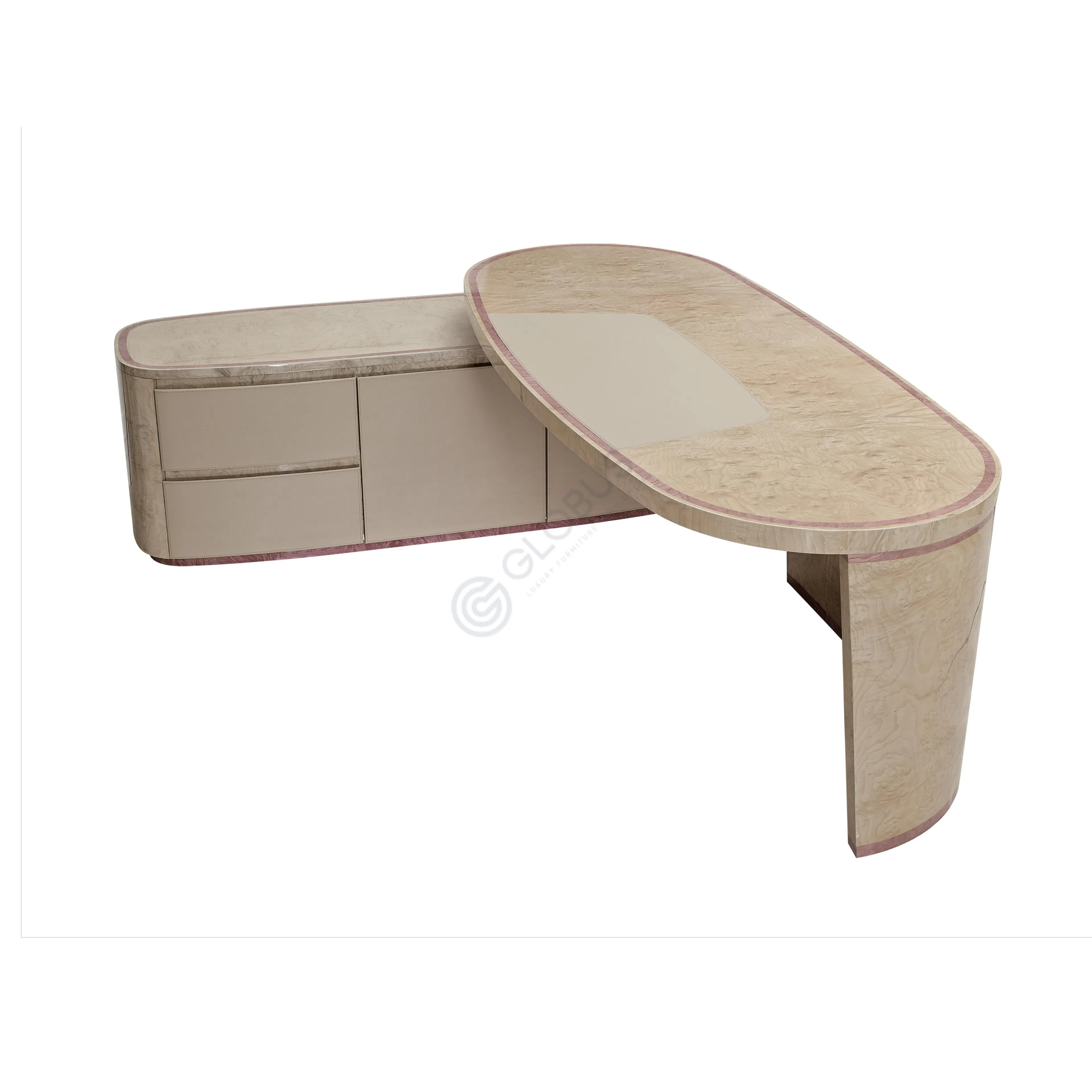 Этот предмет мебели создан для атмосферы современного рабочего пространства руководителя. Его форма сочетает в себе величие неоклассики и строгость современных линий, формируя изысканный силуэт, способный стать доминантой интерьера. Сиденье и спинка, обтянутые натуральной кожей, предлагают исключительный комфорт и долговечность. Вертикальная прострочка на высокой спинке придает дополнительную элегантность. Устойчивое основание изготовлено из полированного металла, чей блеск акцентирует роскошь изделия. Внутренняя конструкция и элементы отделки включают использование натурального дерева и природного мрамора, подтверждая высокий стандарт качества и внимание к деталям. Такое кресло не просто обеспечивает удобство, но и выражает статус, подчеркивая значимость своего владельца. Оно идеально подходит для кабинета, где ценятся комфорт, функциональность и безупречный стиль.