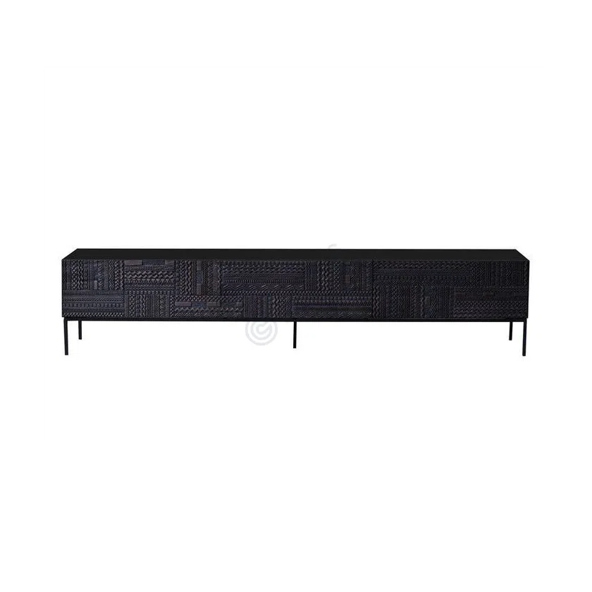 Журнальный столик сочетает в себе этнические мотивы и современную эстетику. Круглая столешница из натурального дерева украшена сложной резьбой с характерным геометрическим орнаментом, будто впитавшим в себя дух путешествий и традиций разных культур. Легкое основание из углеродистой стали придаёт конструкции неожиданную воздушность и надежность, создавая выразительный контраст между прочностью металла и тёплой текстурой дерева.