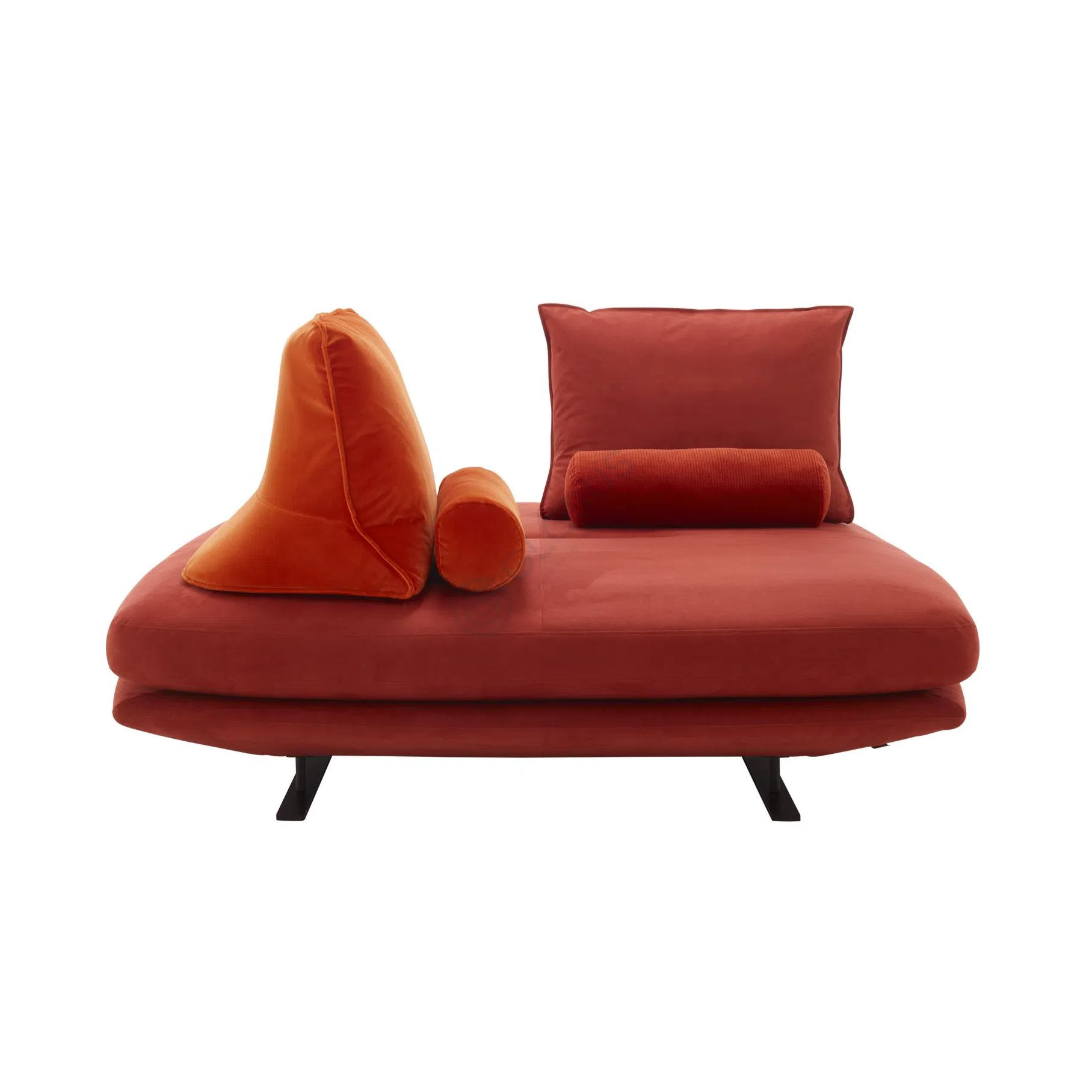В основе изделия лежит прочный каркас из натурального дерева и фанеры, гарантирующий долговечность. Изящные, но устойчивые опоры из углеродистой стали не только обеспечивают надежность, но и создают интересный контраст с объемной текстильной частью, подчеркивая чистоту линий и современный характер модели.