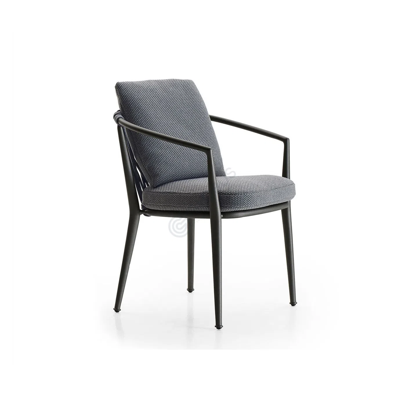 Основа конструкции выполнена из прочного алюминия, обеспечивая долговечность и устойчивость к внешним условиям. Боковые части и спинка украшены искусным плетением из качественной веревки, добавляя уникальную текстуру и визуальный интерес. Мягкое сиденье и объемные подушки обтянуты специальным текстилем, приятным на ощупь и приспособленным для использования под открытым небом.