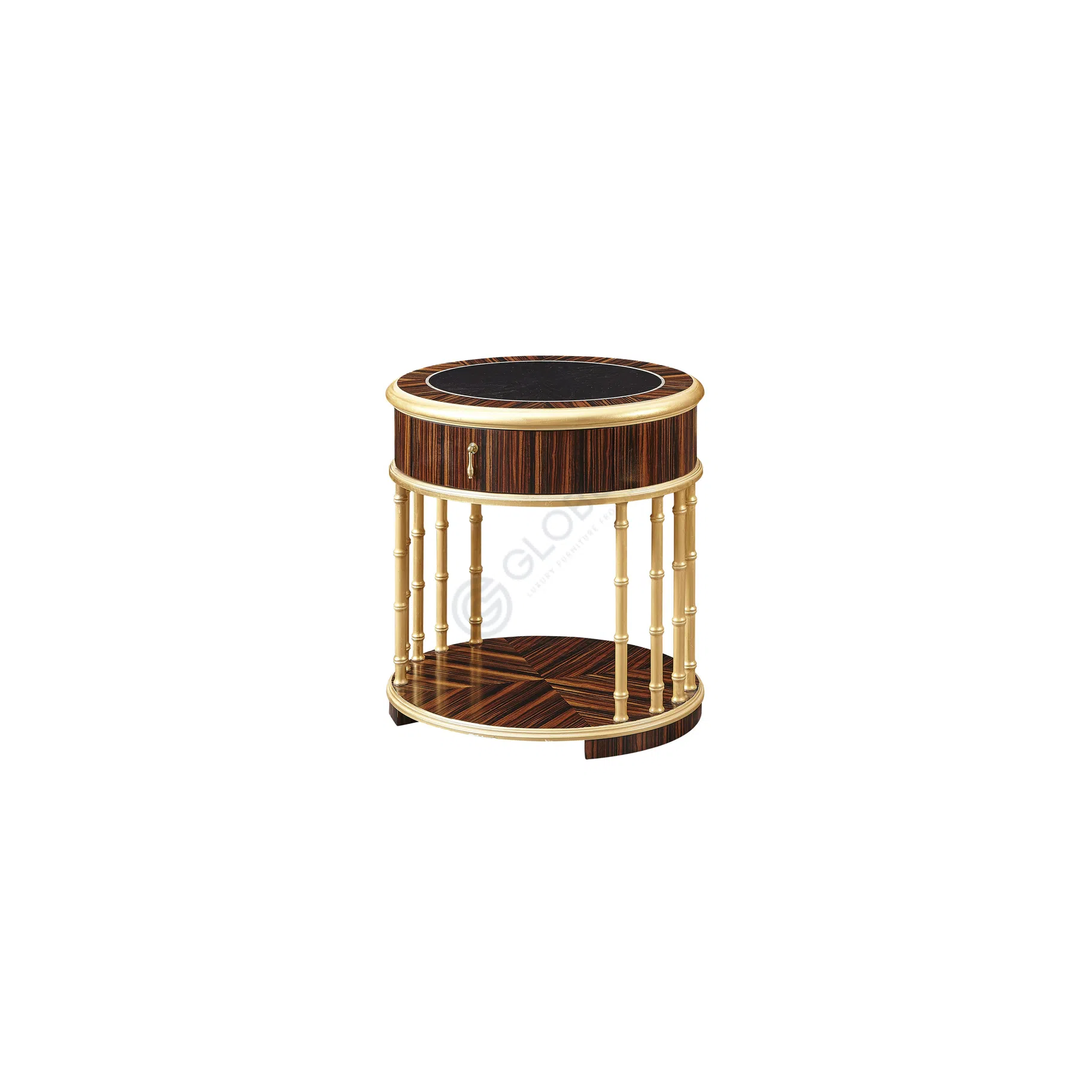 Этот столик представляет собой изысканный элемент интерьера, гармонично сочетающий черты неоклассики и ар-деко. Он создан для того, чтобы стать акцентной деталью в пространстве гостиной, привнося в него атмосферу утонченности и стиля.