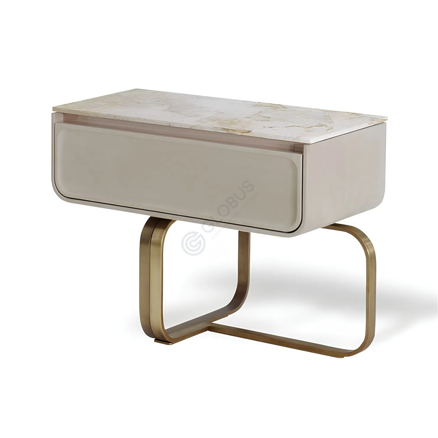 Верхняя поверхность украшена натуральным мрамором с естественным рисунком, что придает каждому экземпляру индивидуальность. Основание из нержавеющей стали с глянцевой полировкой подчеркивает изящность дизайна и добавляет конструкции легкости и устойчивости.