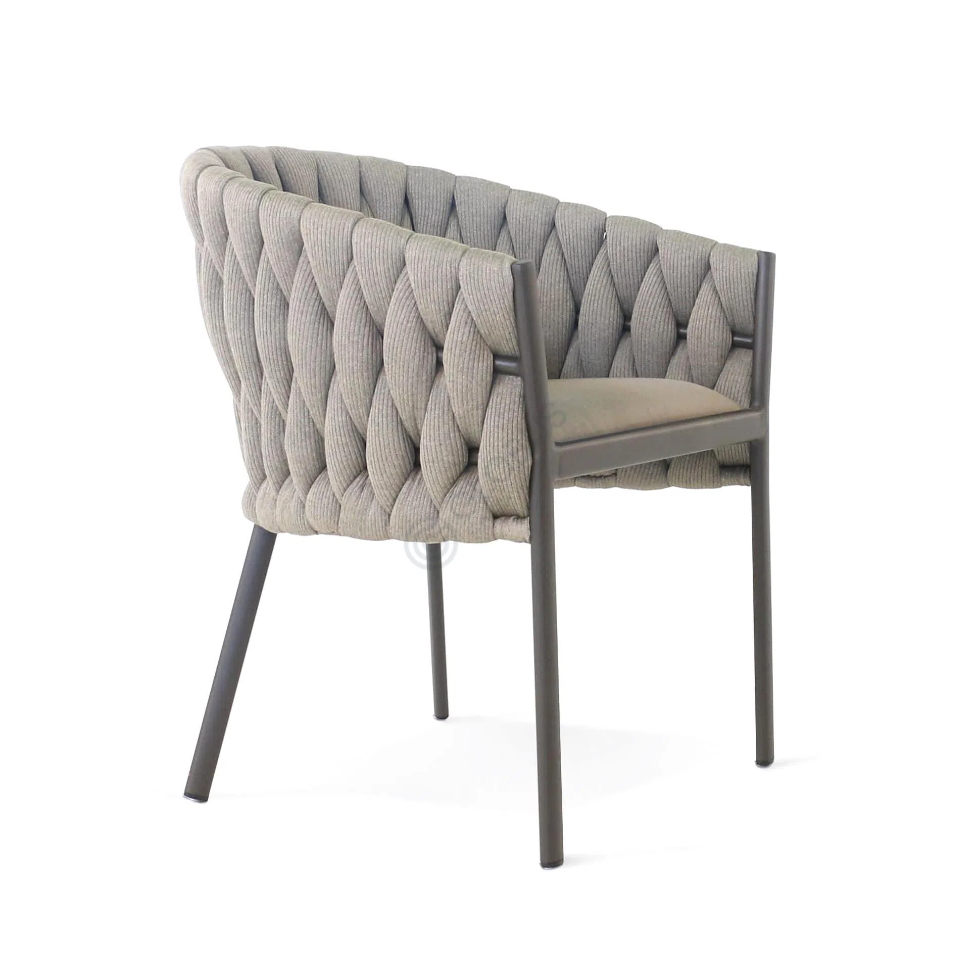 Это уличное кресло изготовлено из легкого алюминия, который идеально подходит для использования на открытом воздухе. Конструкция кресла выполнена из верёвки, а сиденье и спинка покрыты мягкой текстильной тканью. Взглянув на это кресло, вы увидите простой и современный дизайн, который подходит для любого сада, террасы или бассейна. Кресло доступно в сером цвете и идеально дополнит вашу коллекцию мебели на открытом воздухе.